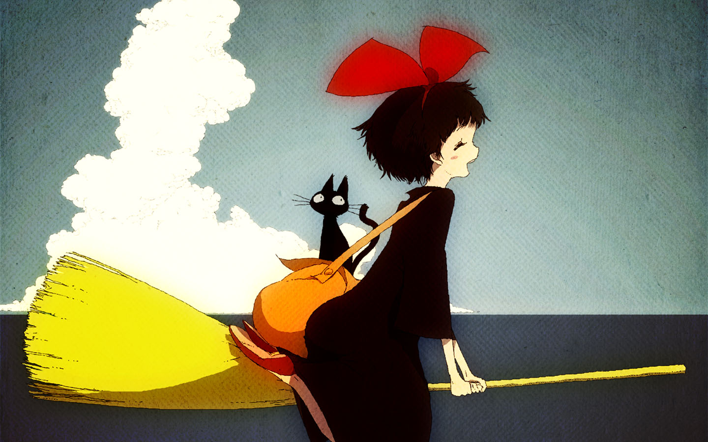 海边小镇与屋顶女孩唯美动漫风景免费电脑壁纸下载