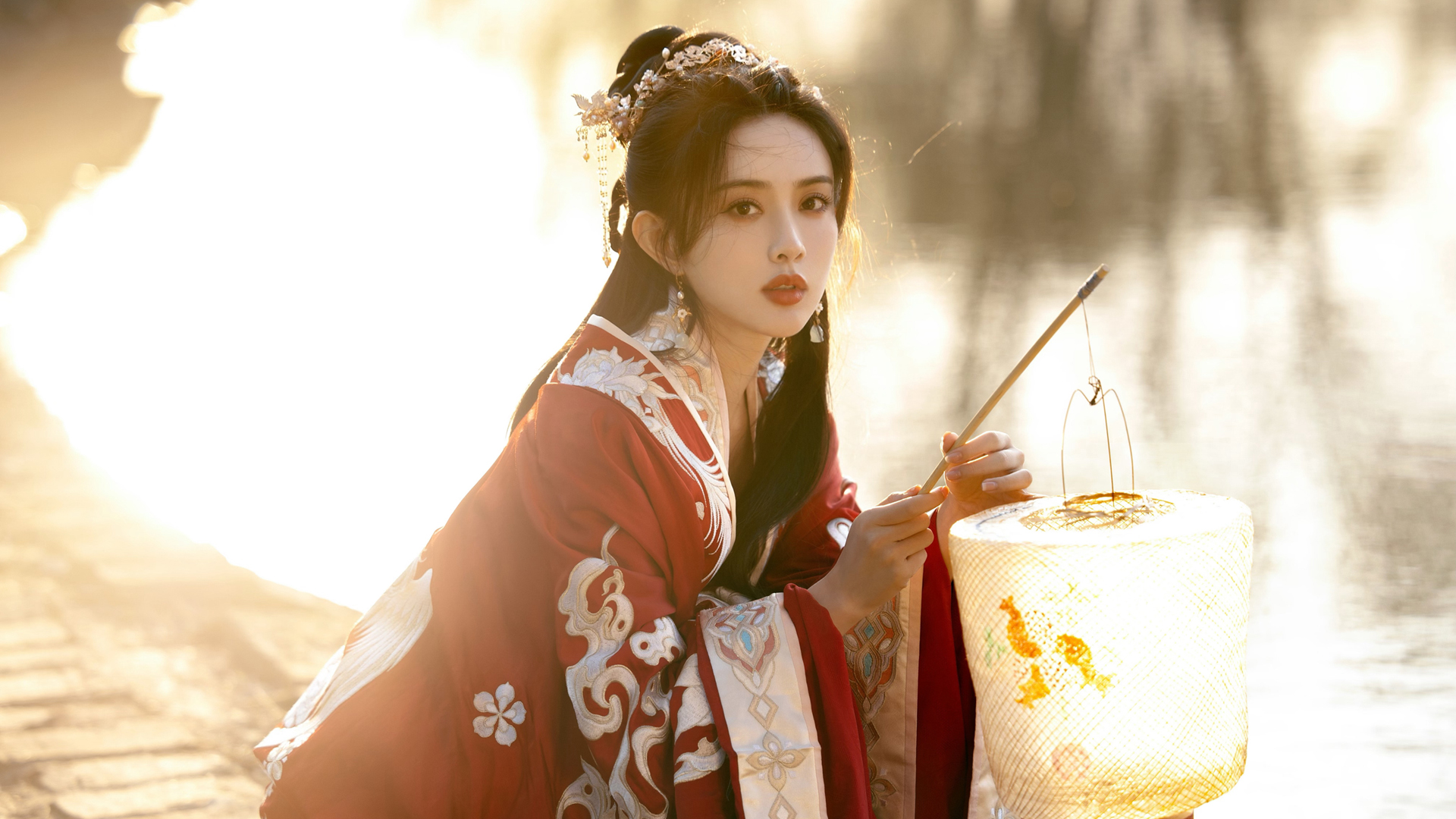 王楚然红色古装裙子灯笼唯美古风美女电脑壁纸免费下载