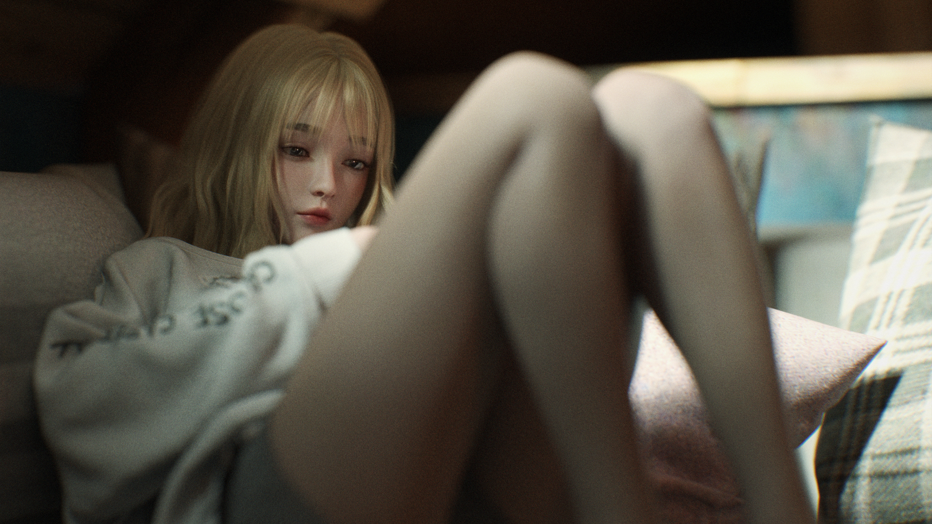 可爱动漫女生在房间沙发旁窗口电脑壁纸免费下载
