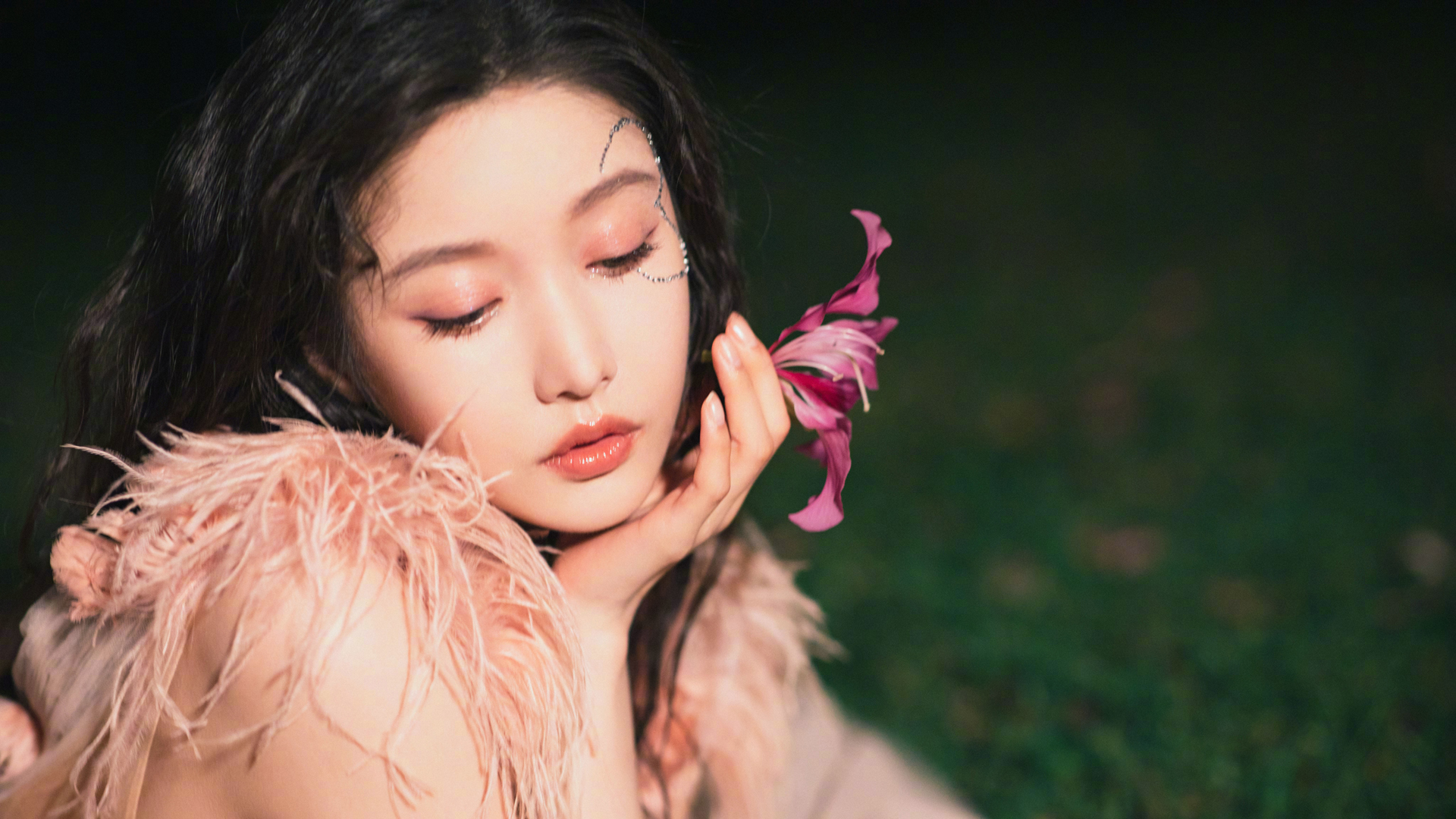 金敏瑞气质美女写真,鲜花绿植背景免费电脑壁纸下载