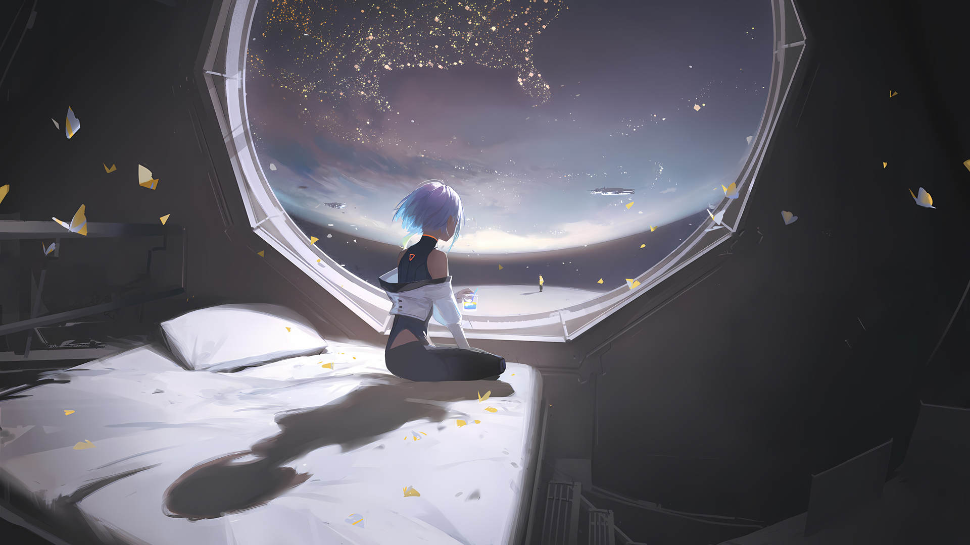 女孩明亮眼睛甜美笑容坐势动漫风景免费电脑壁纸下载