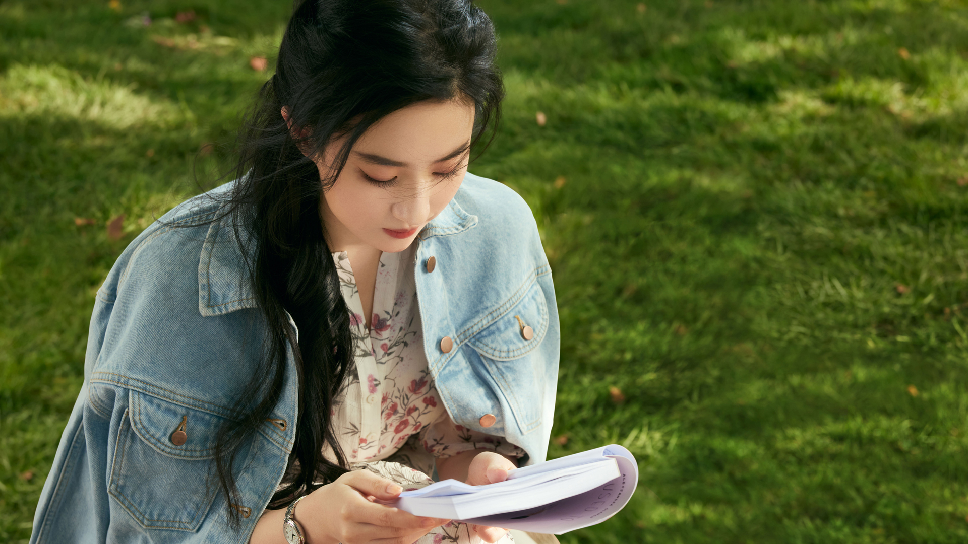 草地唯美美女图免费电脑壁纸下载