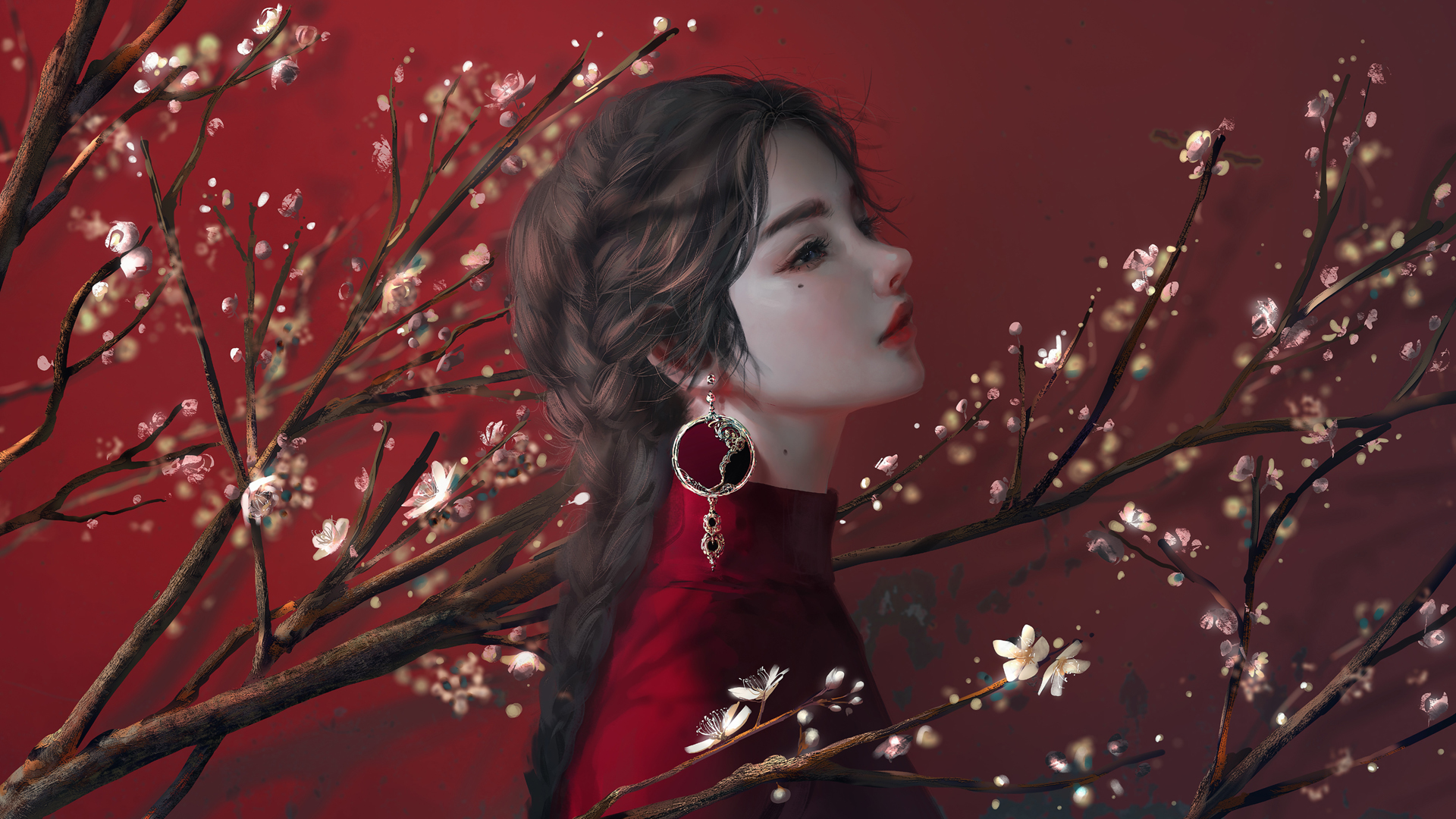 好看辫子齐刘海女孩姑娘自画像动漫美女人物免费电脑壁纸下载