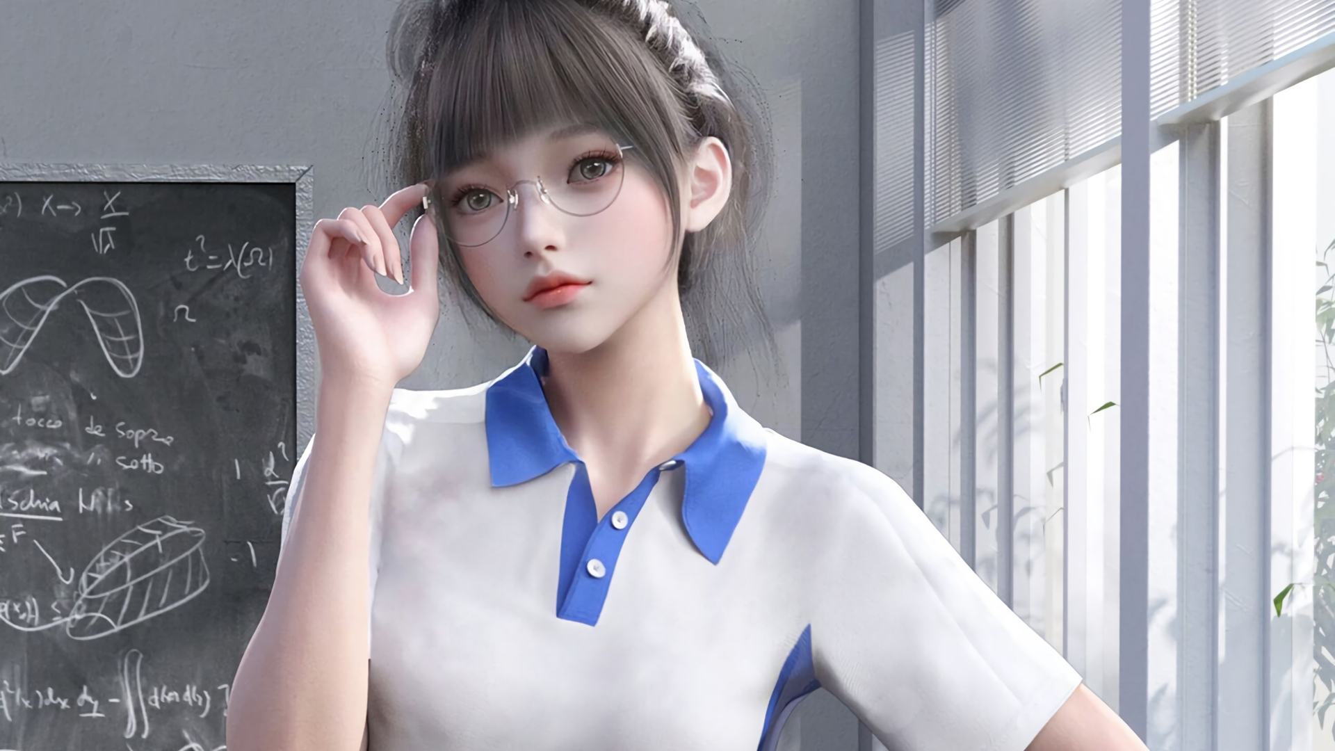 yoly莜莉 3D 运动 女孩 眼镜 白色衣服 动漫 电脑 壁纸