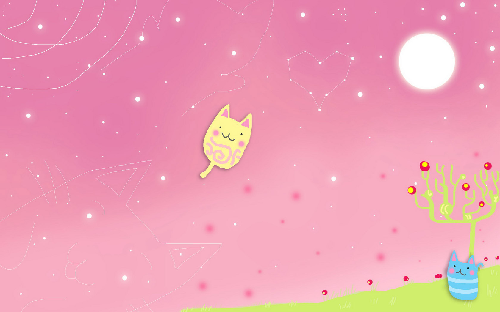 可爱女孩与小猫耳朵尾巴动漫电脑壁纸免费下载