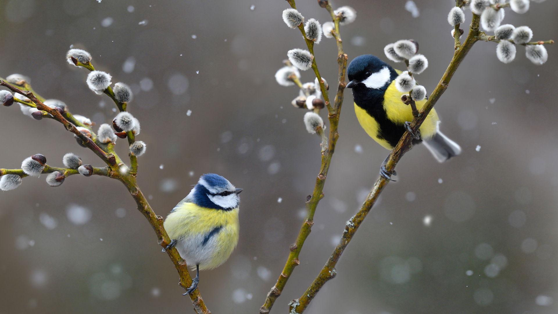 冬天松鼠与松果雪景 可爱动物免费电脑壁纸下载