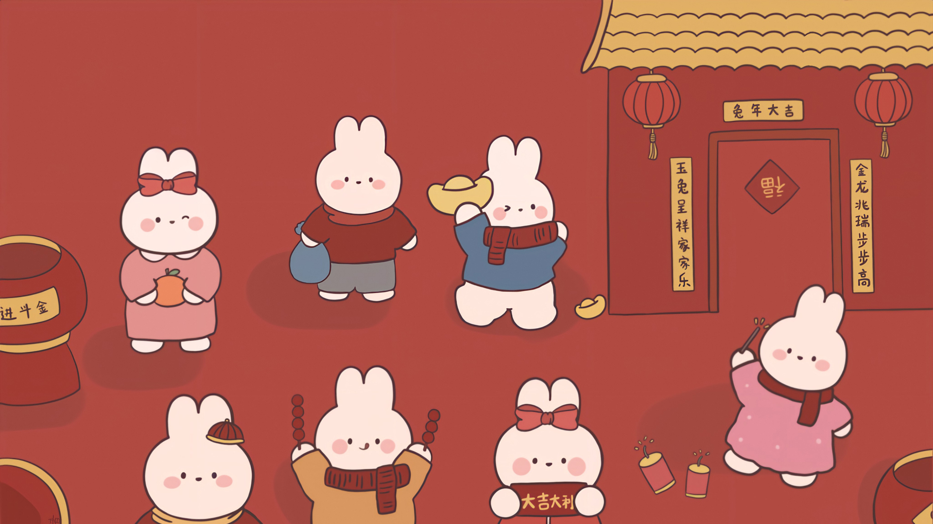 一起看烟花可爱卡通新年节日免费电脑壁纸下载