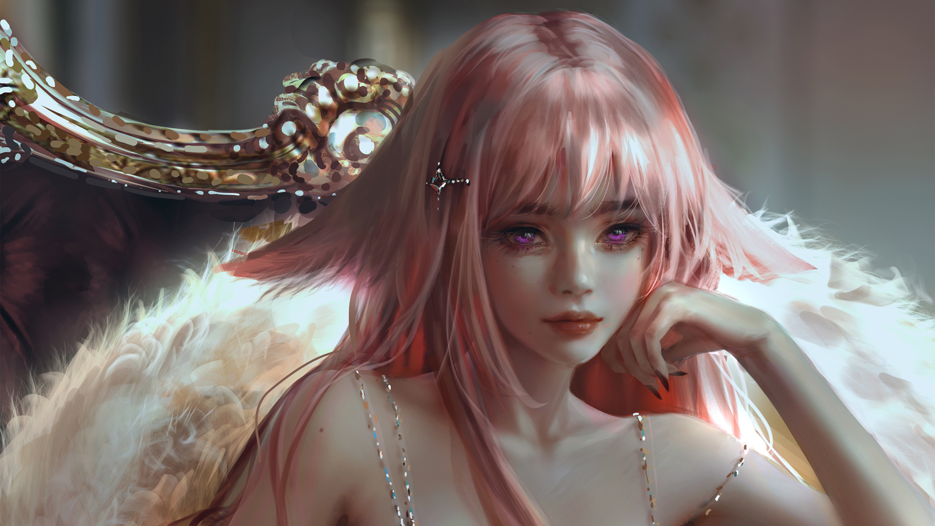 紫色眼睛长发女孩高清厚涂动漫免费电脑壁纸下载