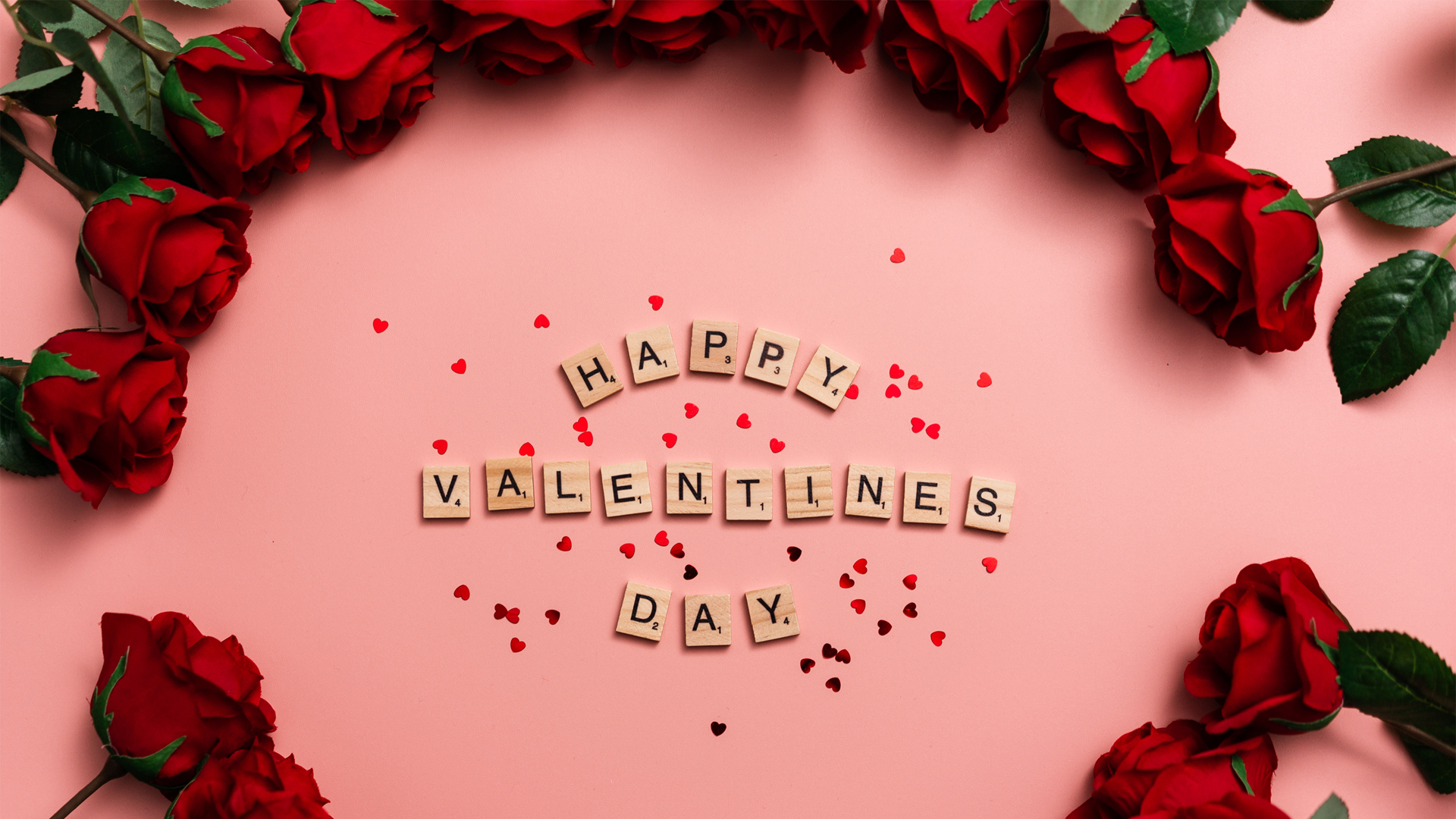 红色玫瑰花情人节快乐高清节日免费电脑壁纸下载