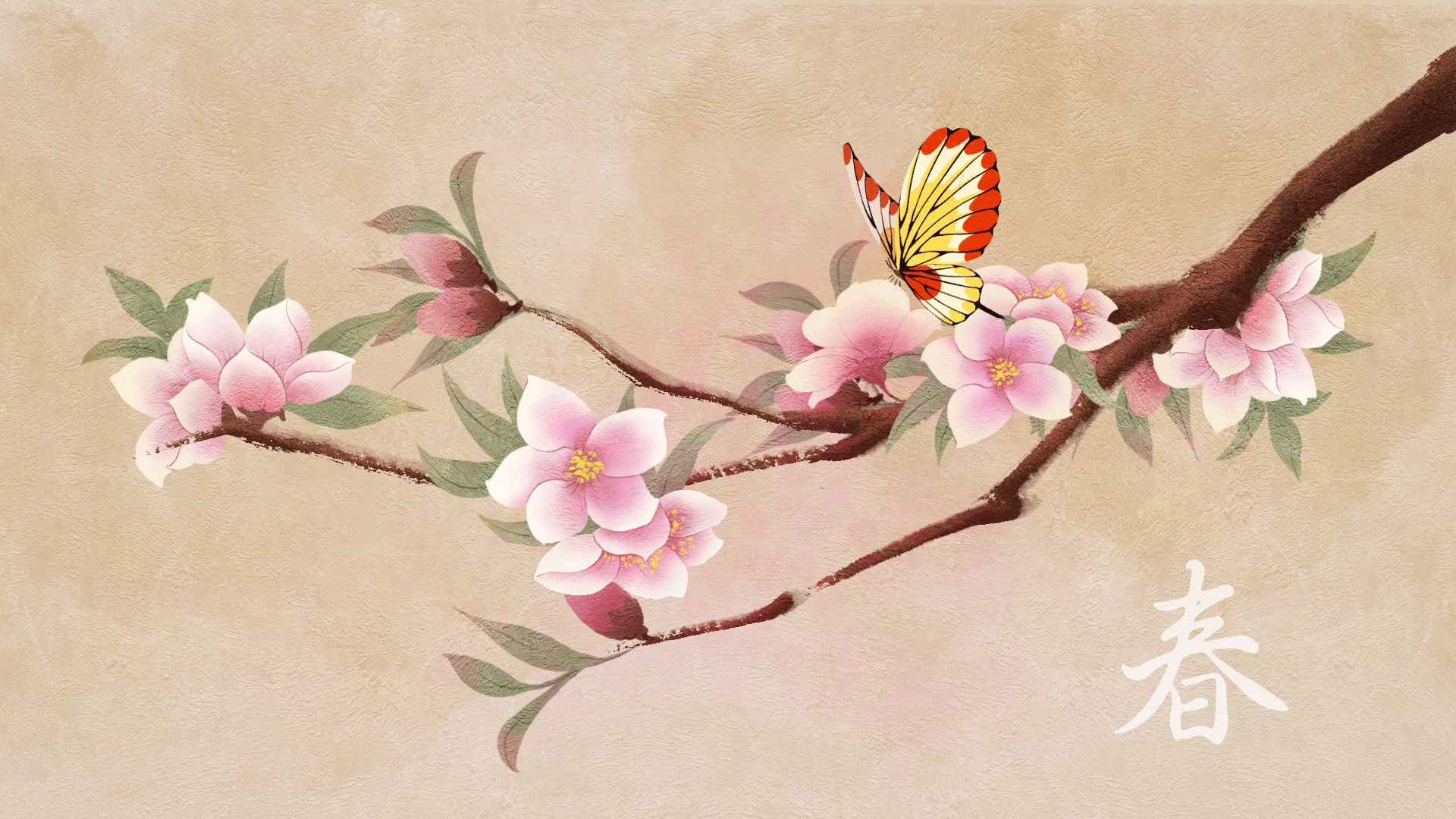 中国风春天花与蝴蝶动态电脑壁纸免费下载