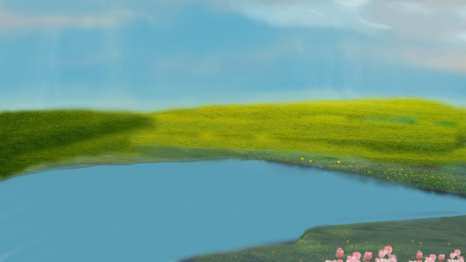 鲜花商店房子树木精美绘画风景免费电脑壁纸下载