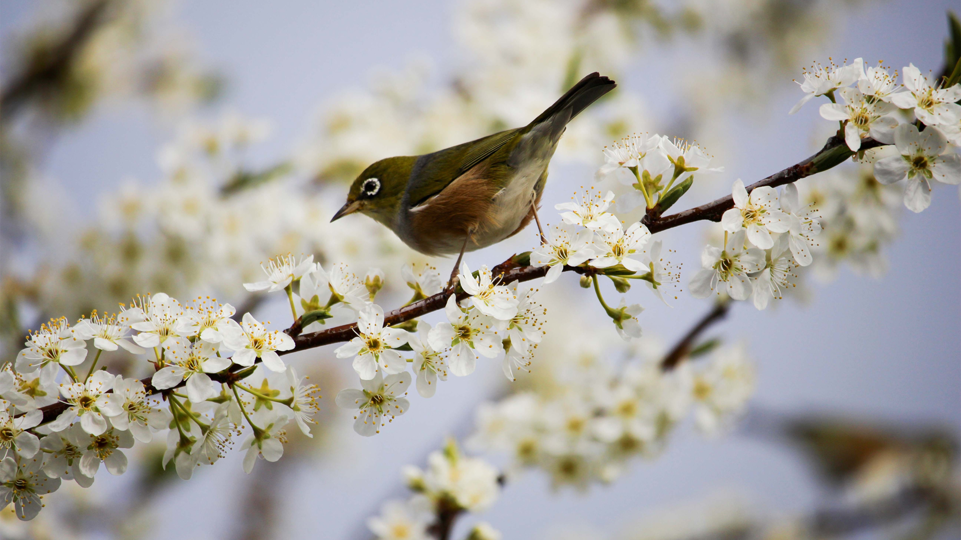 可爱松鼠与花小草绿色植物主题免费电脑壁纸下载