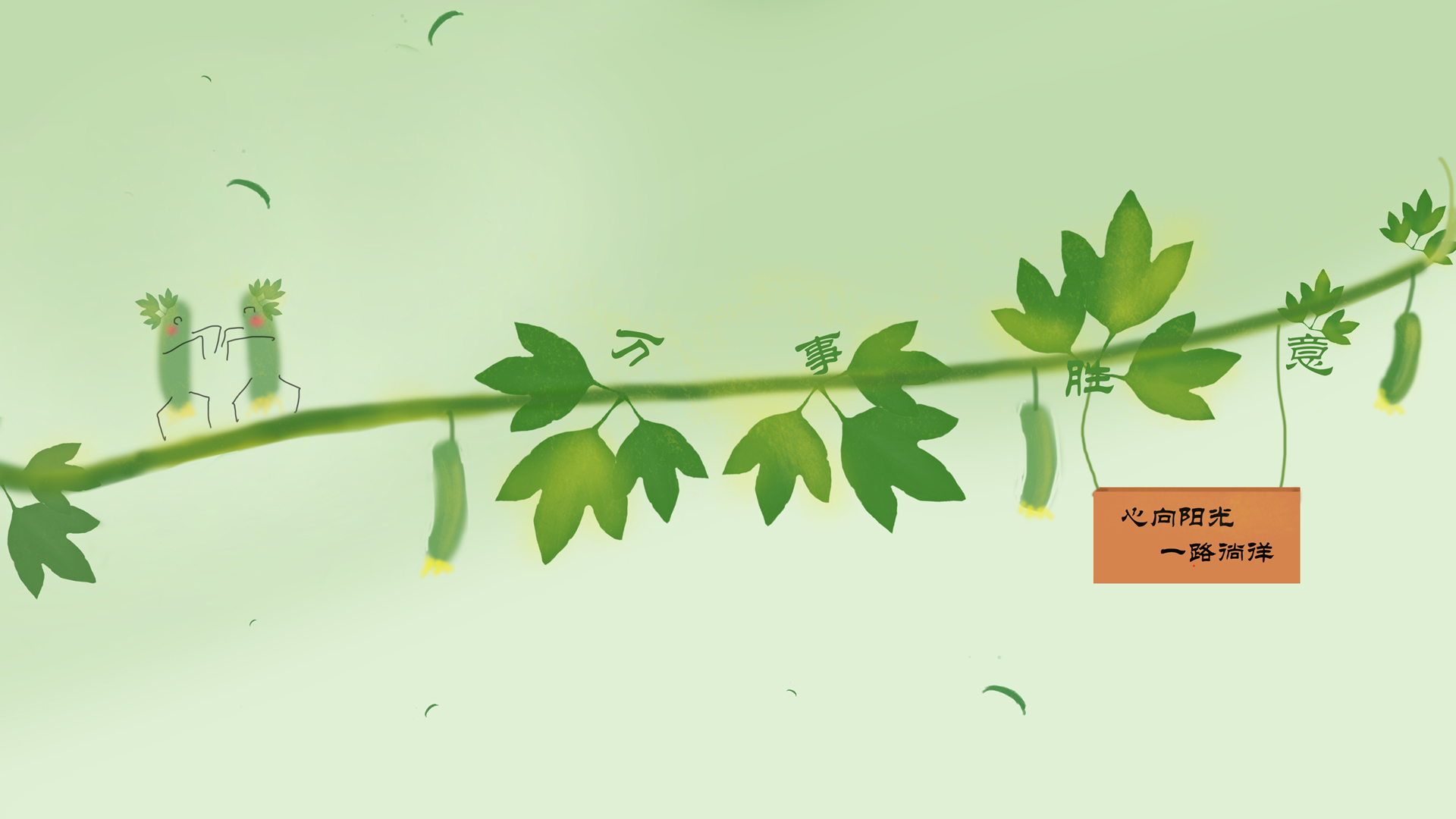 原创小清新丝瓜创意绘画护眼壁纸,心向阳光一路徜徉免费下载