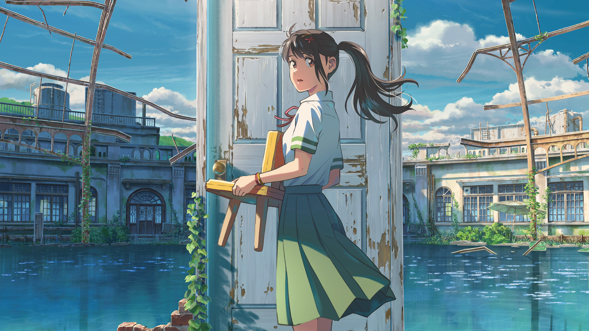 古风动漫美女长发配花 免费电脑壁纸下载