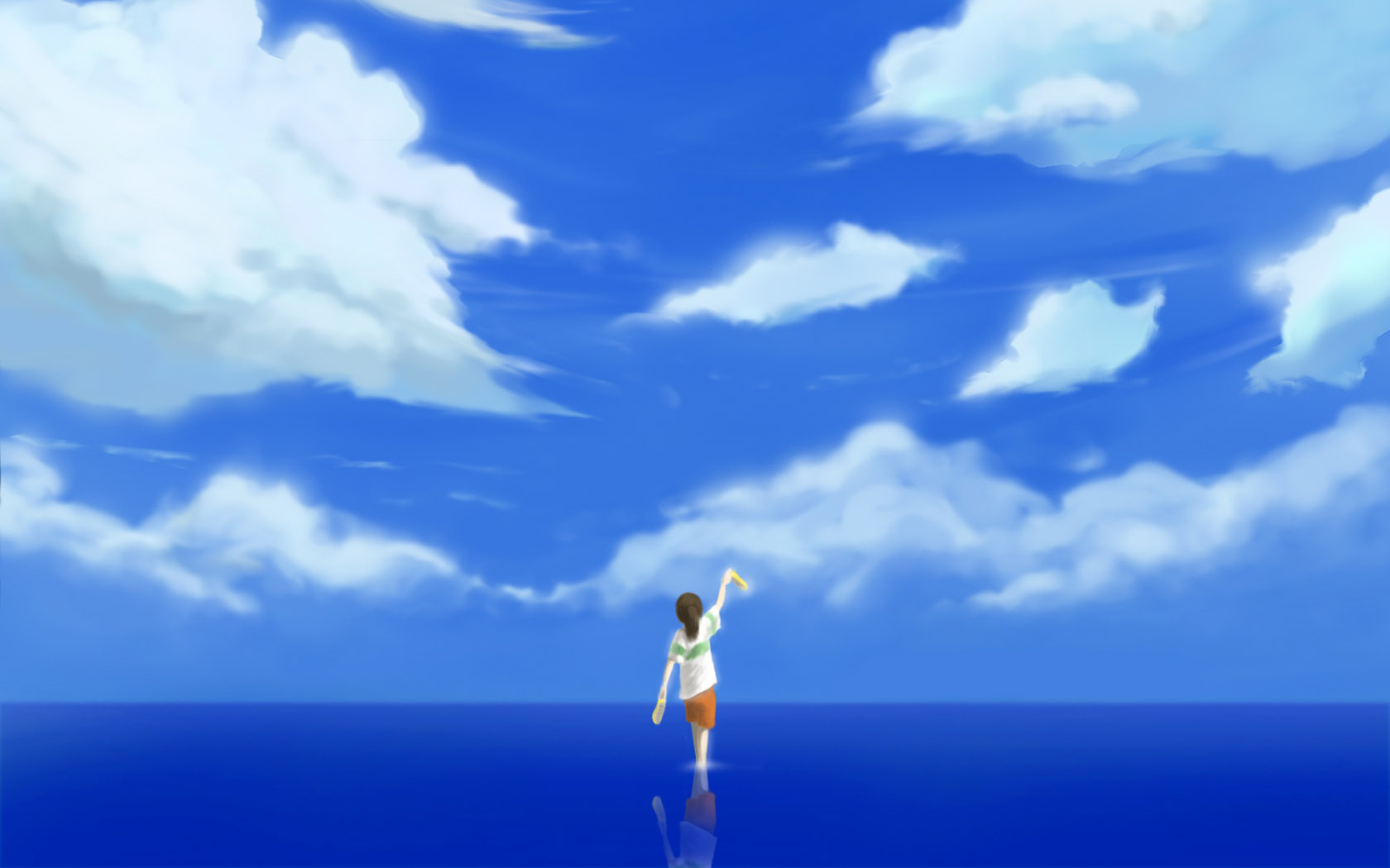 好看长发动漫女孩与绝美风景动漫壁纸 免费电脑壁纸下载