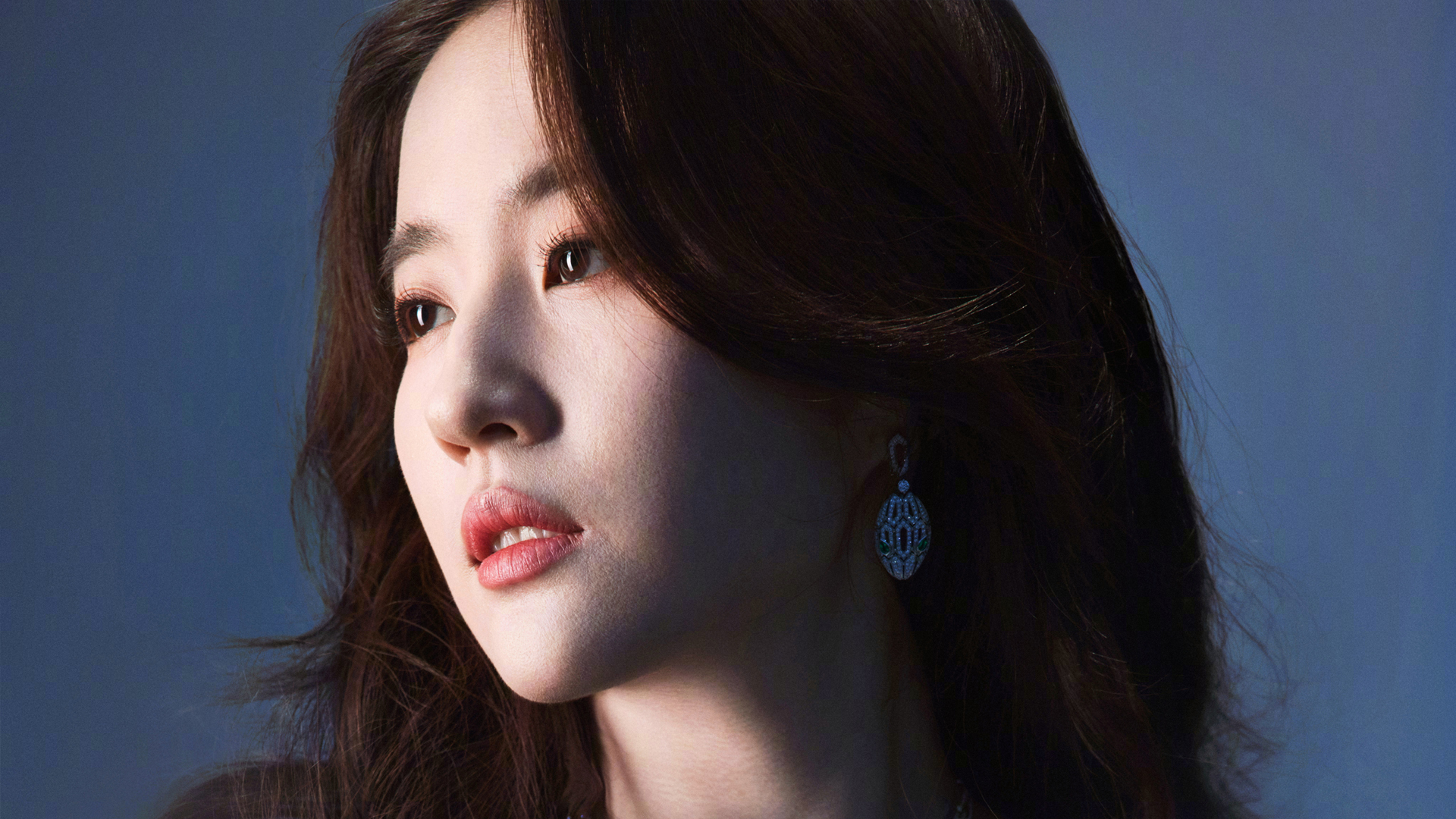 刘亦菲白色衬衫桌前电脑旁品茶美女免费电脑壁纸下载