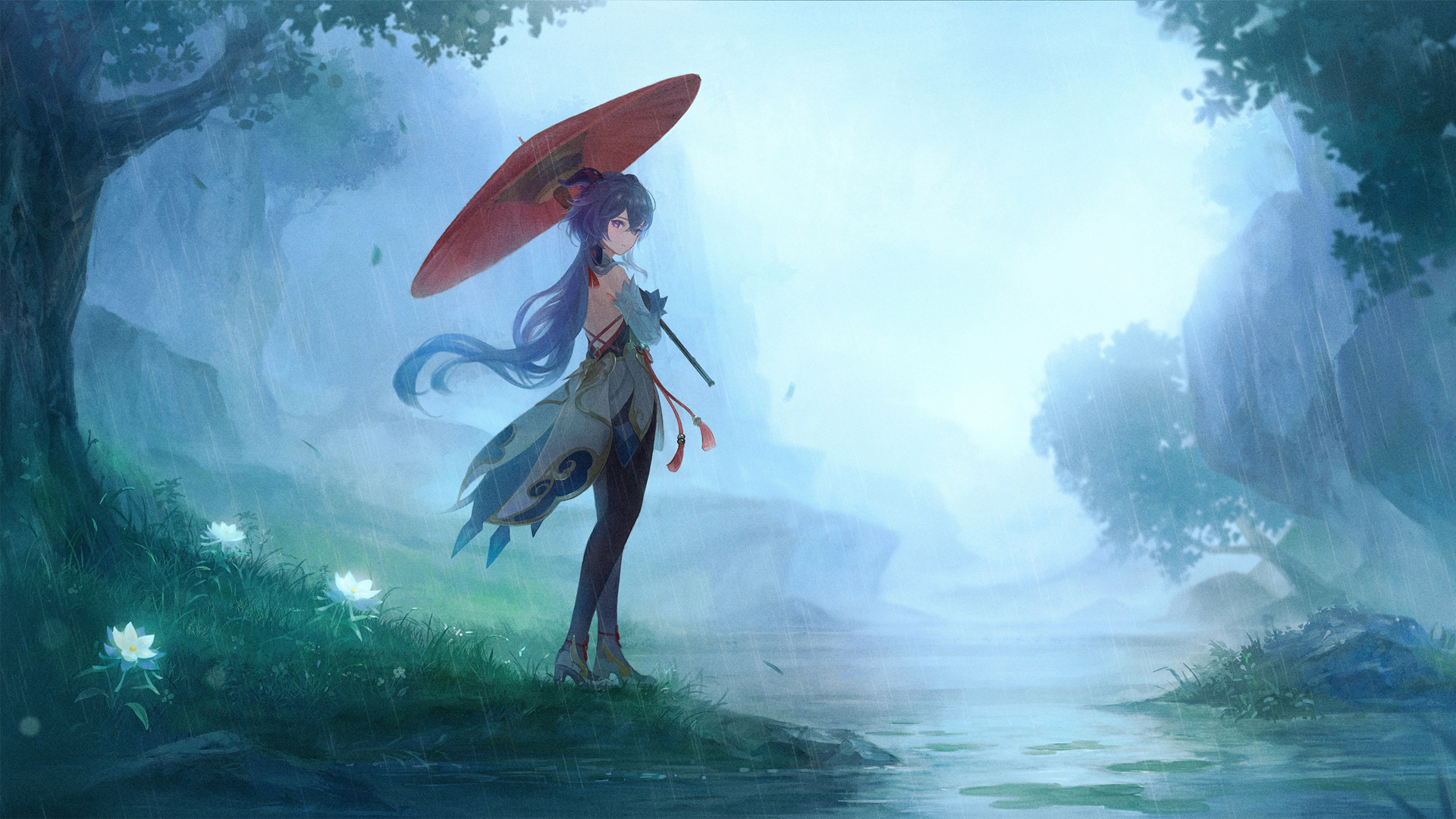 动漫女孩和服持伞高清免费电脑桌面壁纸下载