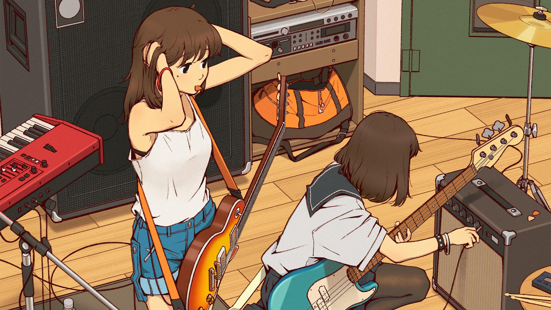 街头涂鸦背景墙创意风动漫美女2K高清免费电脑壁纸下载