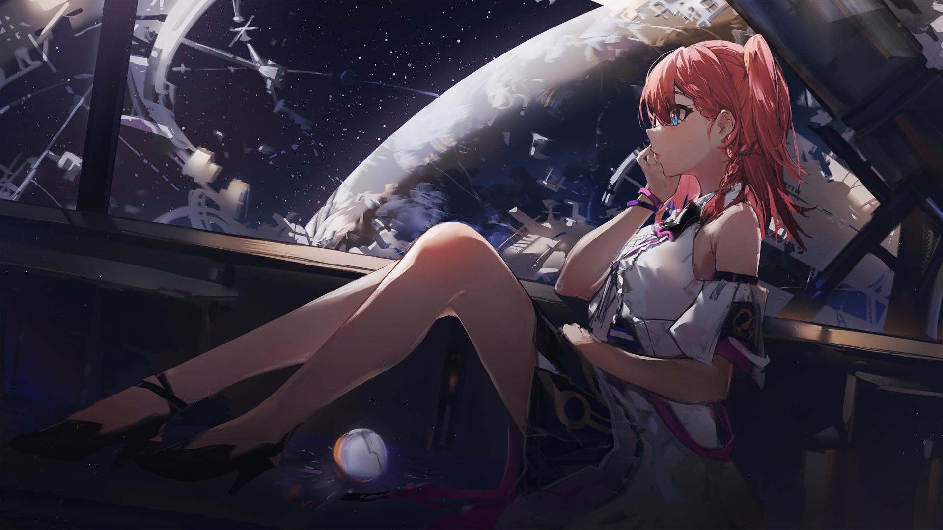 同人 动漫美女 红色头发 高跟鞋 高清壁纸