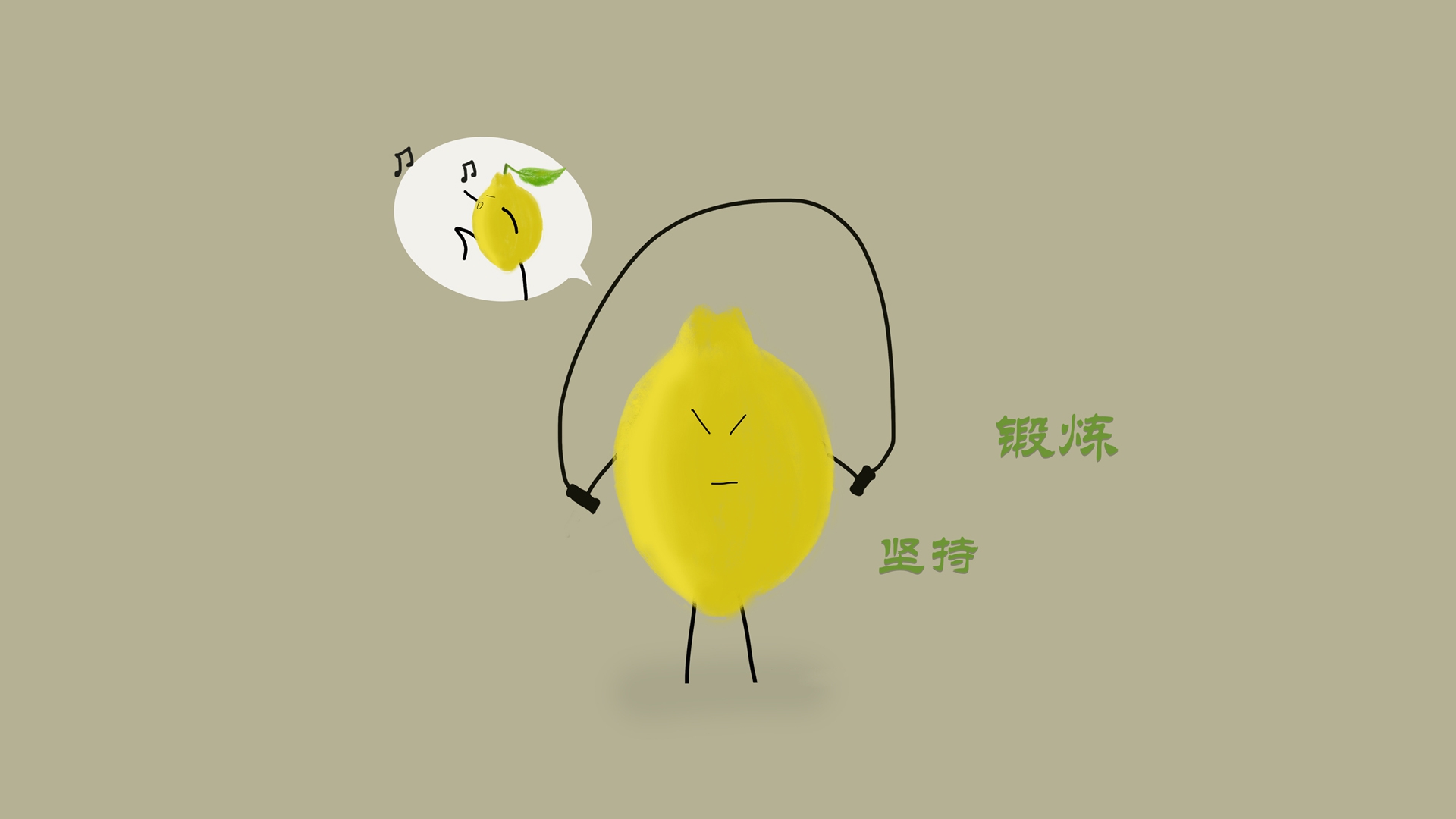 原创 手绘 创意 柠檬 坚持锻炼 每天运动一小时 个性简约高清电脑壁纸