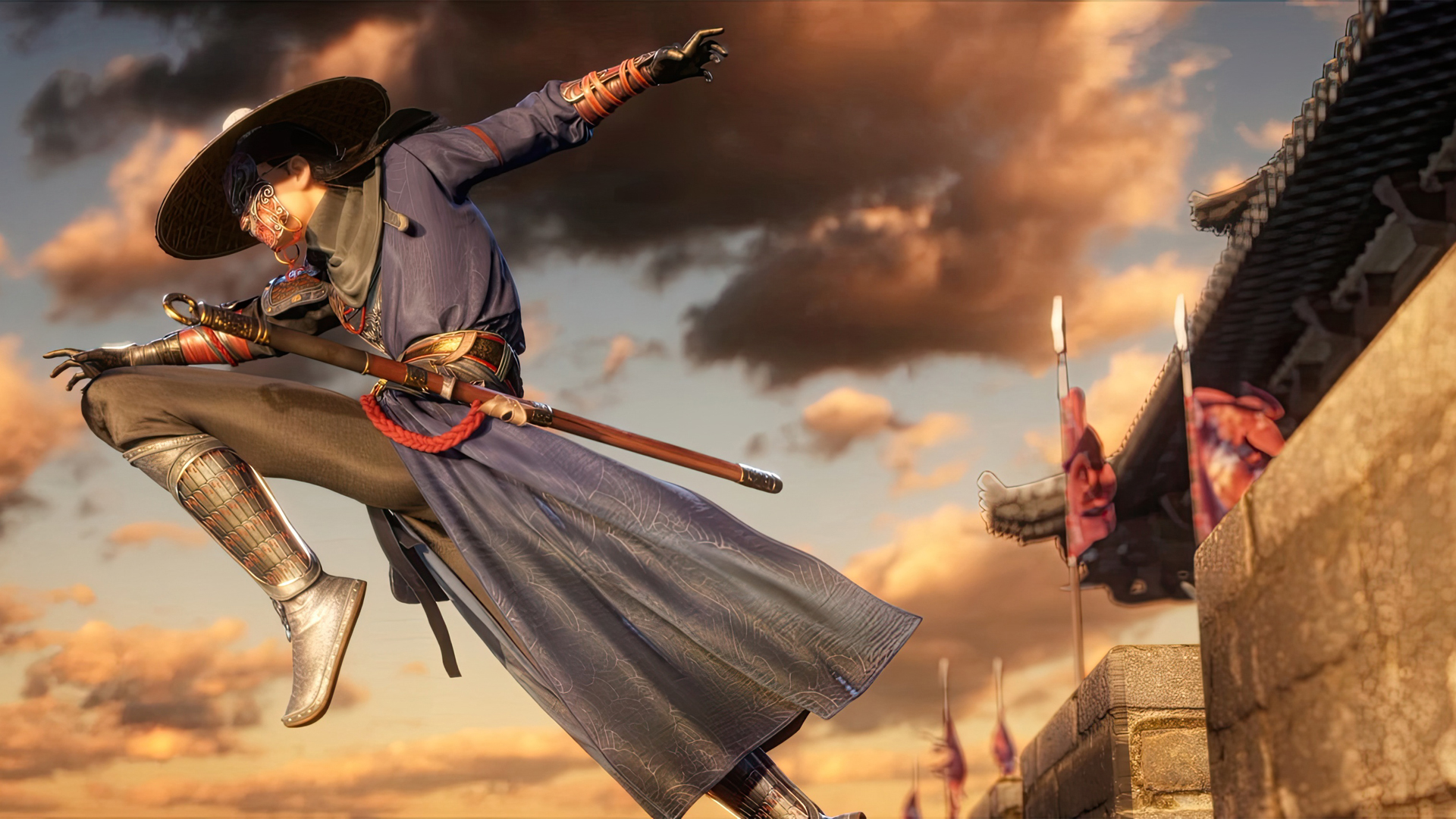 兔耳朵女孩红衣持伞春节古风建筑动漫壁纸免费下载