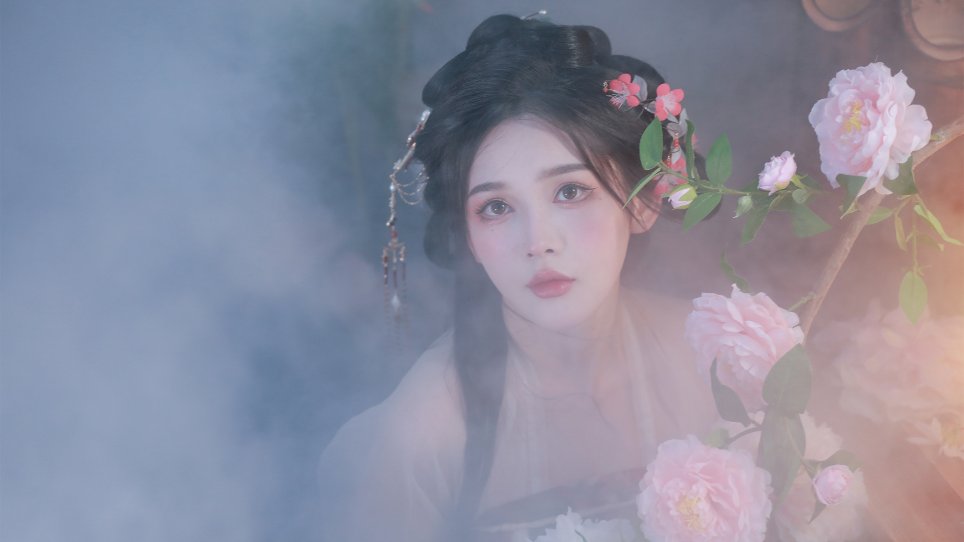 小清新居家美女 白色睡衣 白玫瑰花 苗条身材的小美女壁纸
