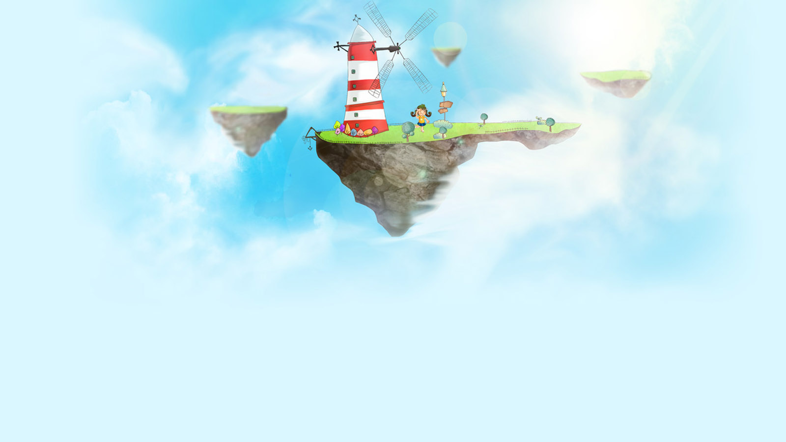 可爱蓝色头发眼睛动漫女孩天空主题免费电脑桌面壁纸下载