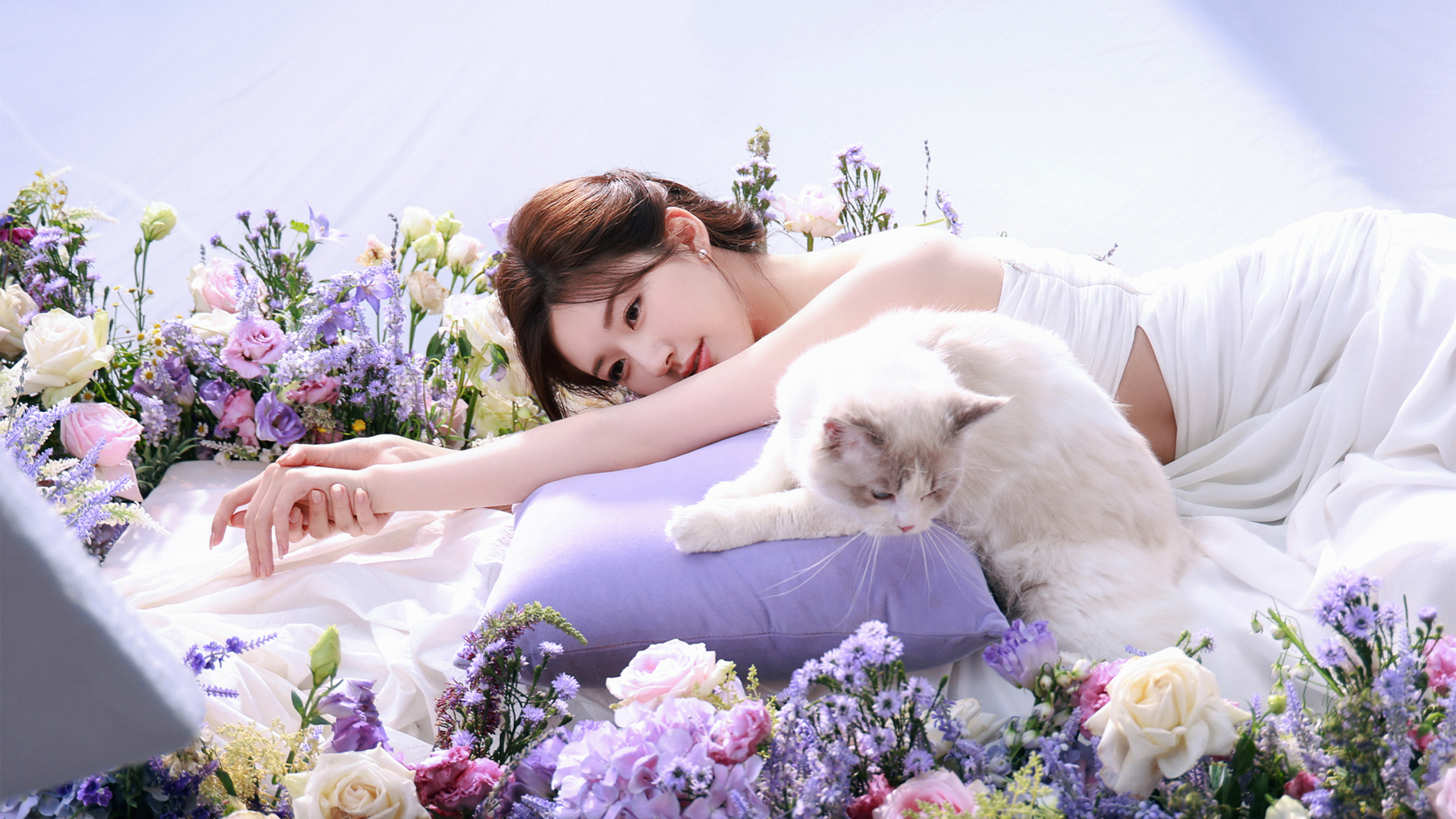 赵露思与猫鲜花主题高清美女免费电脑壁纸下载