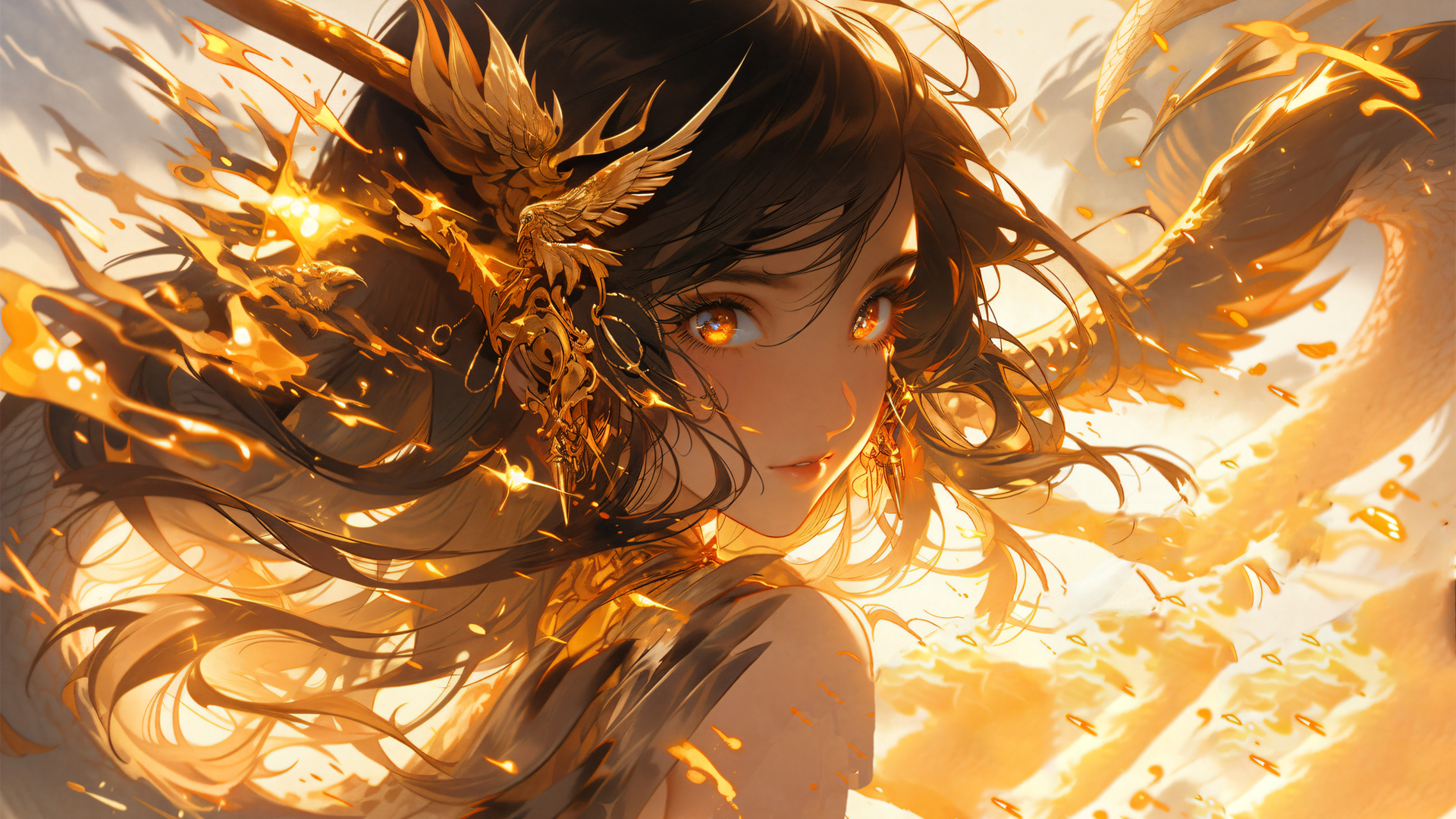 AI绘画水墨三玄色炫焰赛博风动漫女孩免费电脑壁纸下载