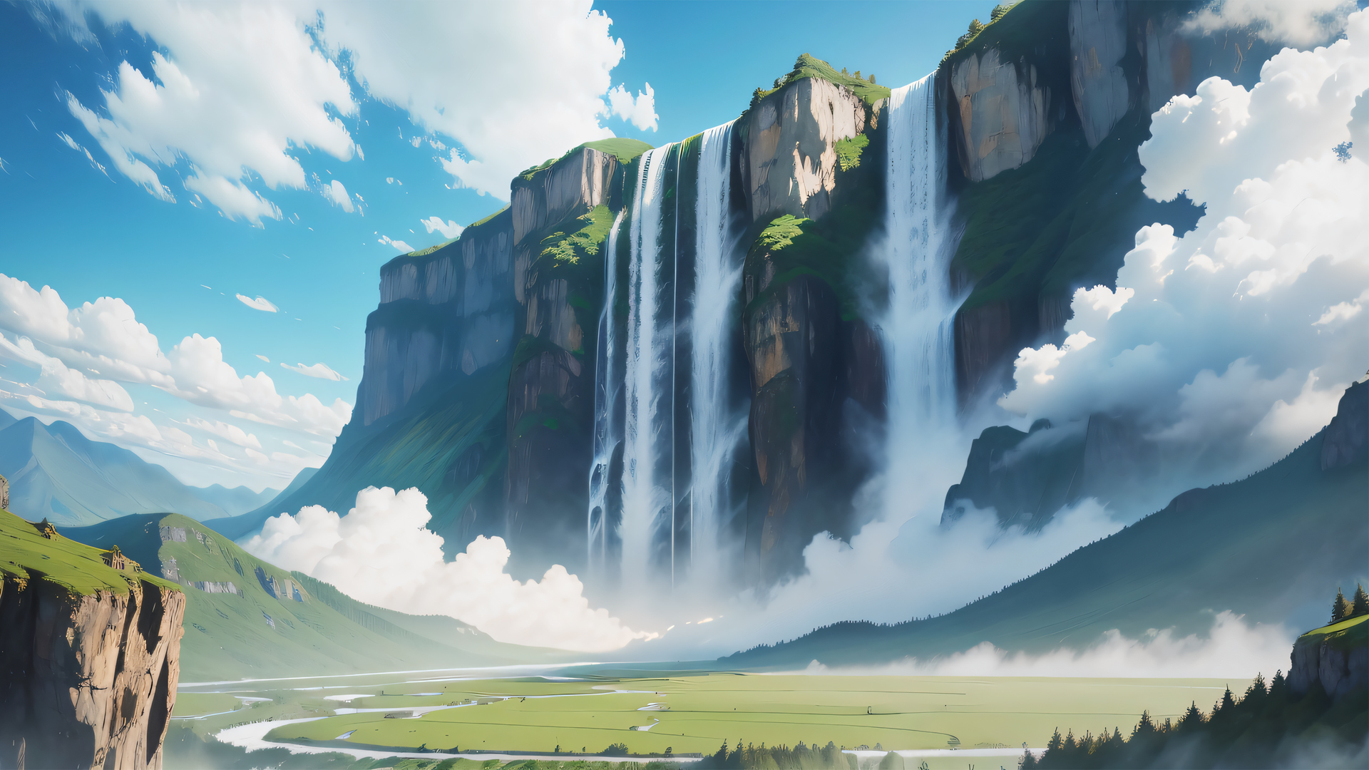 AI风景阿尔卑斯山树林小房子绿草地鲜花护眼电脑壁纸免费下载