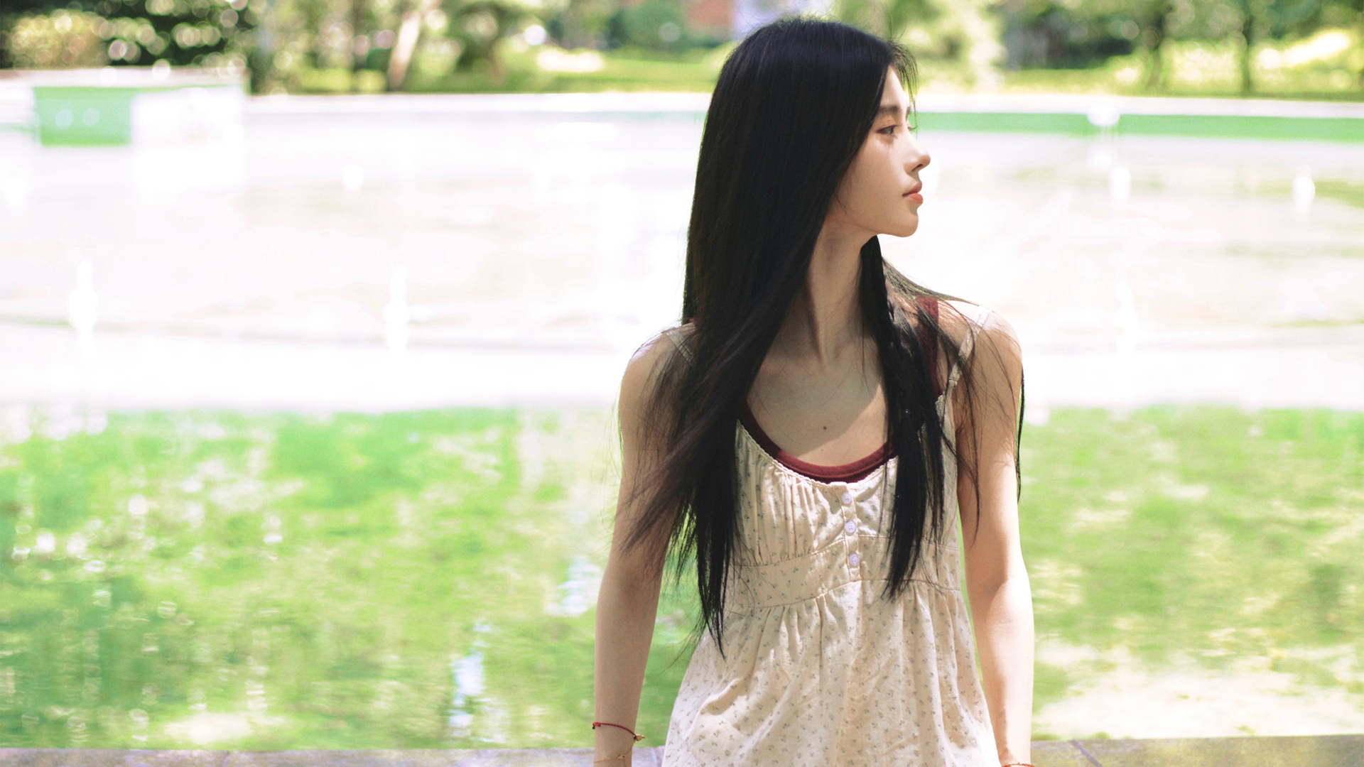 花园清新风鞠婧祎美女免费电脑壁纸下载