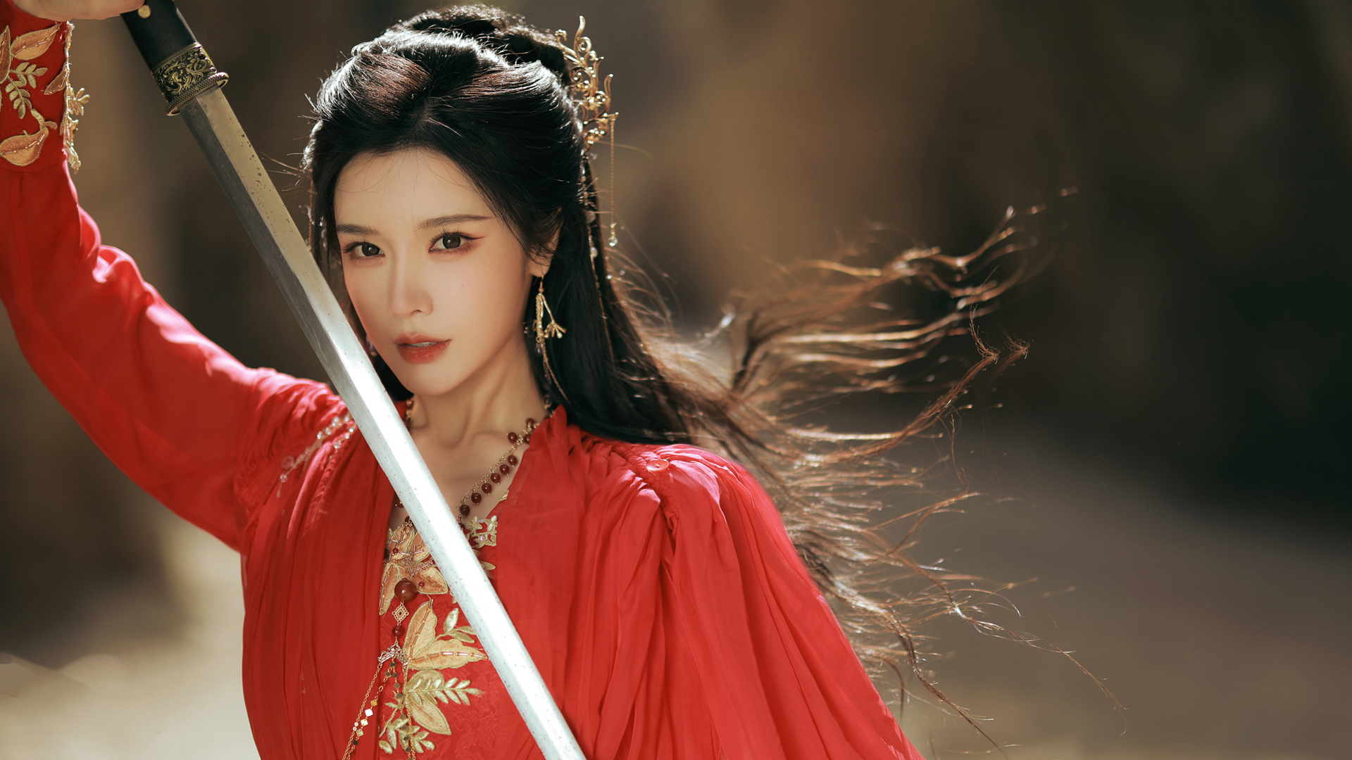 自然风尚,沙漠森林背景下的长秀发美女高清电脑壁纸免费下载
