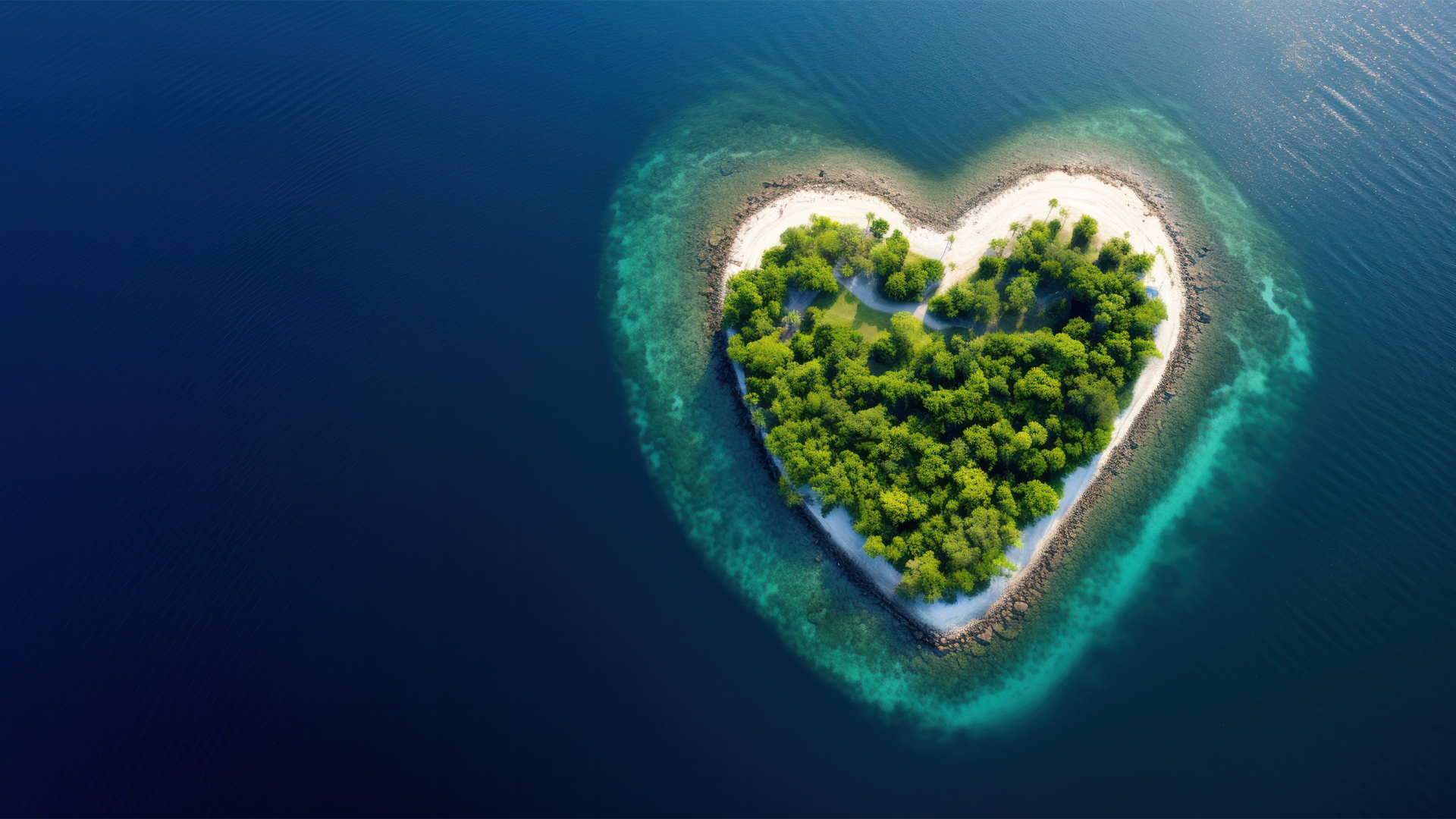 美丽蓝色海洋心形岛风景免费电脑壁纸下载