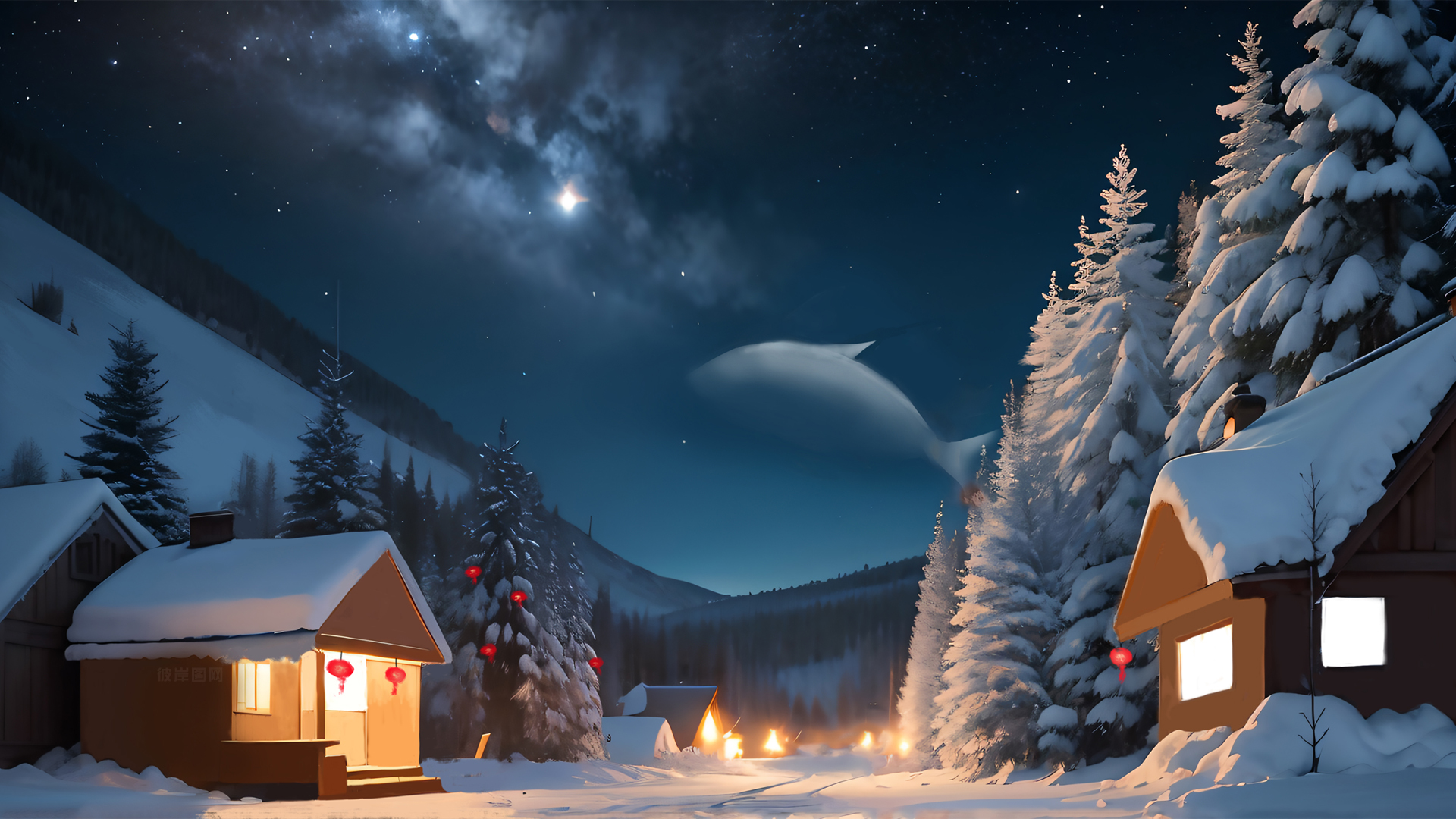 2024 龙年 乡村 星光 海豚 新年 风景桌面背景壁纸