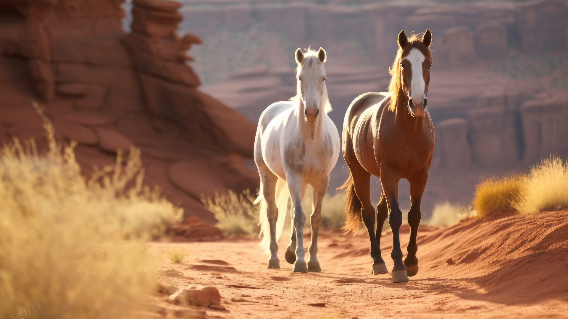 马驰草原牧场山间 绝美天空风景动物免费电脑壁纸下载