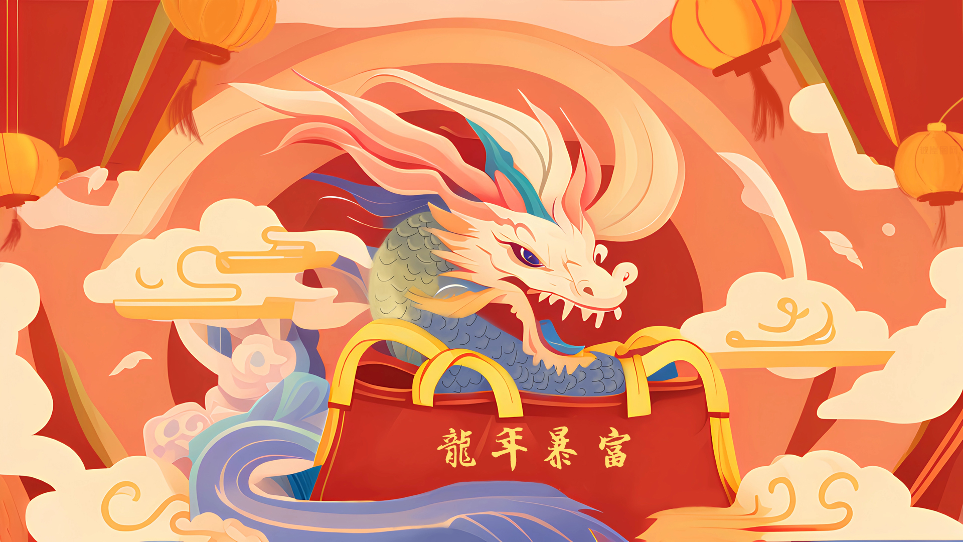 龙年暴富 2024 喜庆 春节 新年 龙 高清壁纸背景图