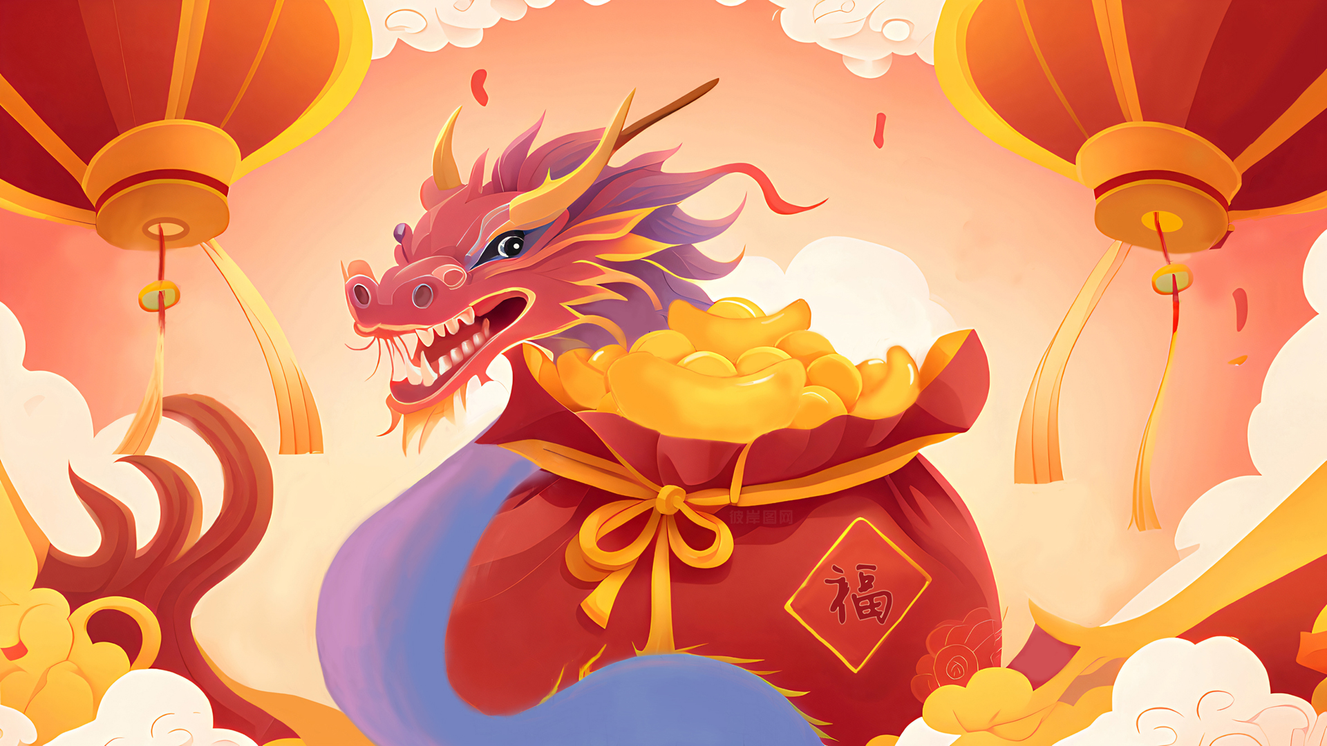 2024年龙年 龙 元宝 灯笼 福 喜庆 新年高清壁纸背景图片