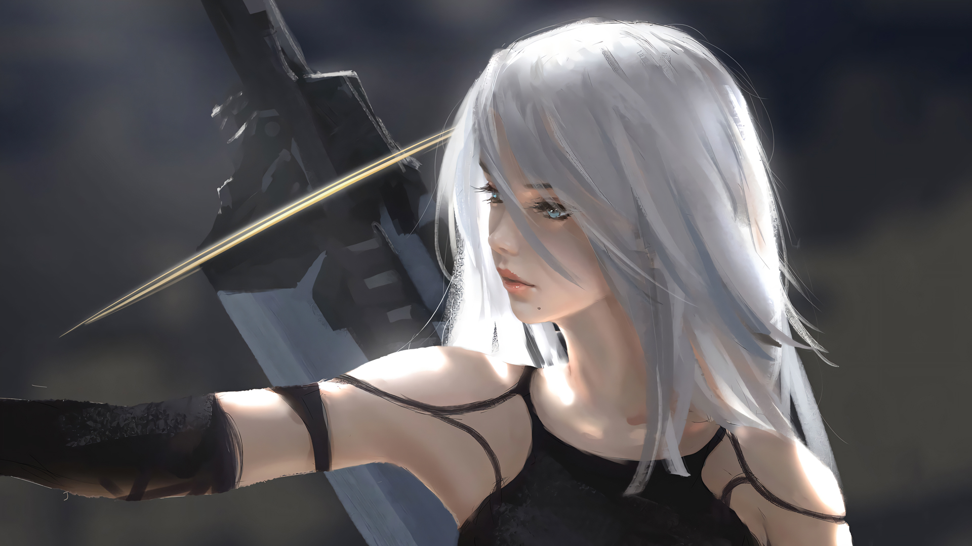 尼尔机械纪元2B黑色裙子 剑 红色花朵 游戏美女壁纸