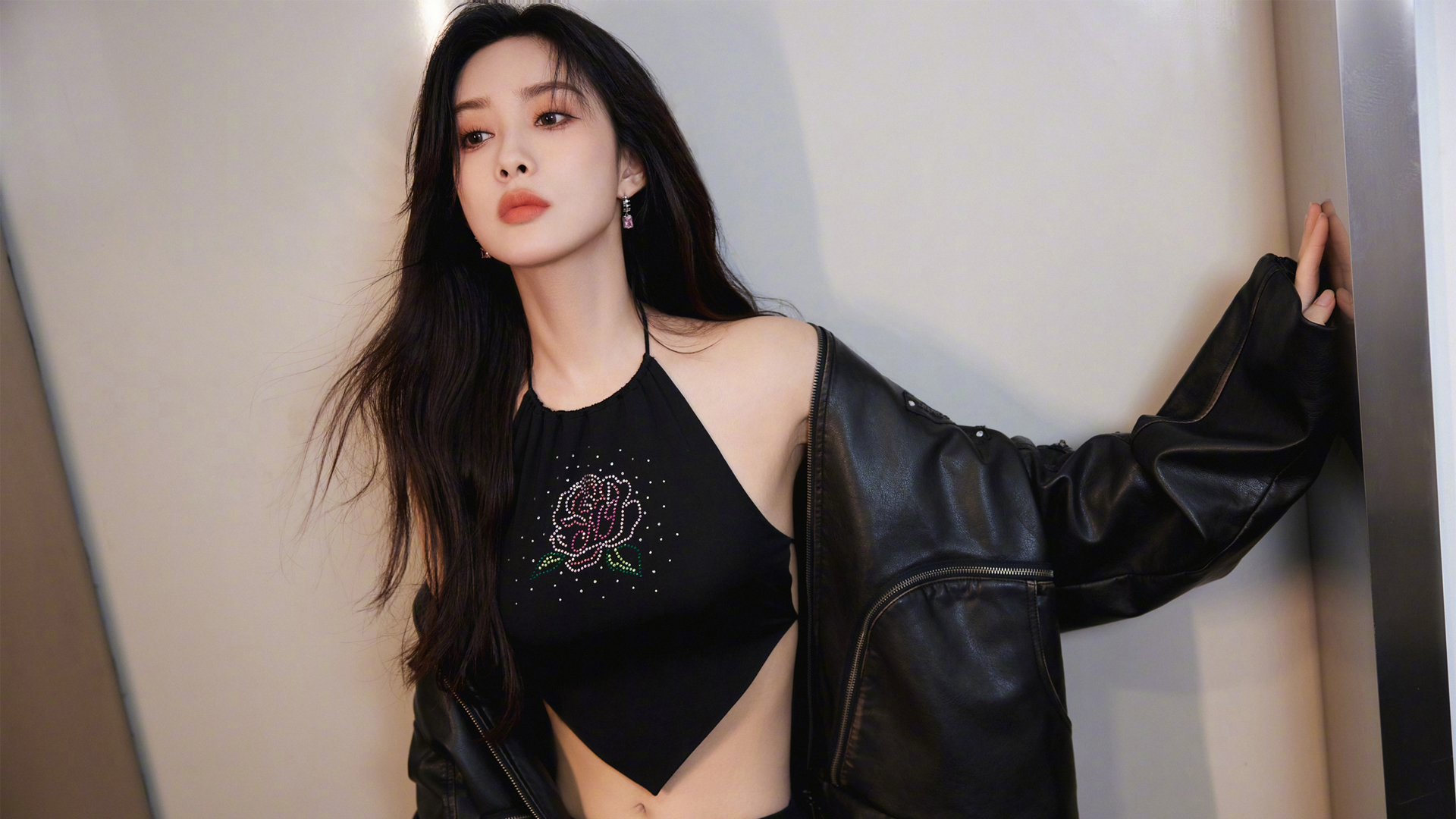 孟子义黑色套装漂亮美女免费电脑壁纸下载