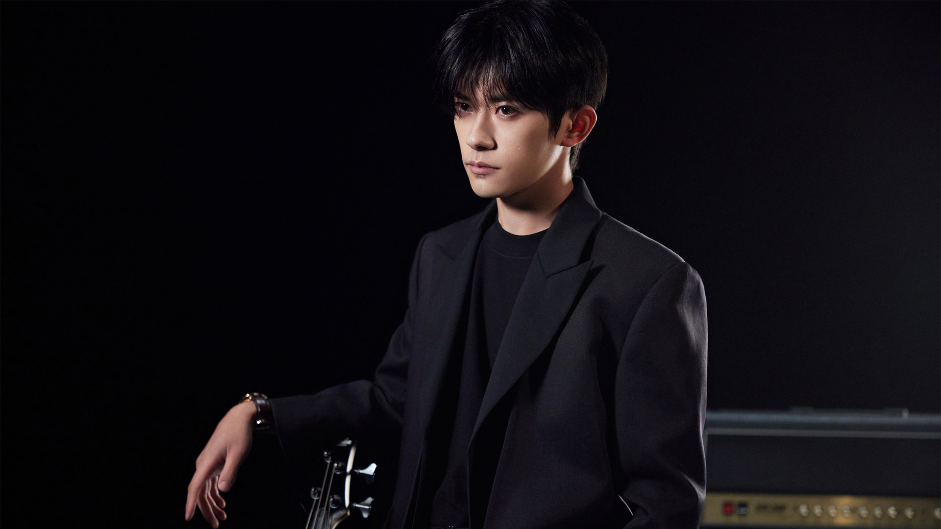 易烊千玺黑色西装持吉他高清帅哥电脑壁纸免费下载