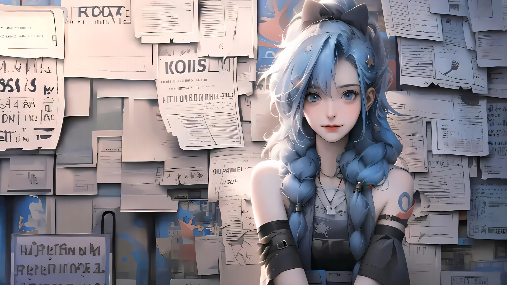 短发气质AI动漫美女壁纸 黑色外套配白衬衫电脑免费下载