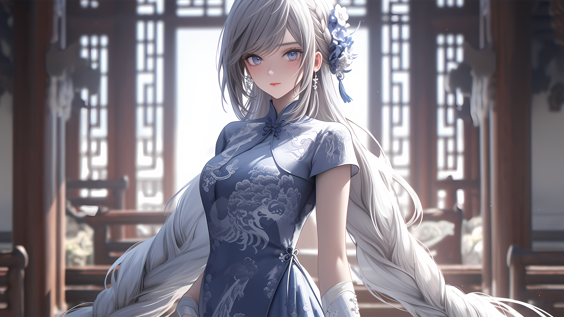古风蓝衣少女动漫壁纸 免费高清电脑壁纸下载