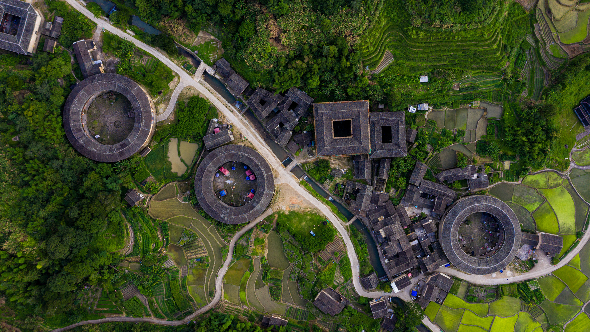 土楼鸟瞰图风景桌面壁纸