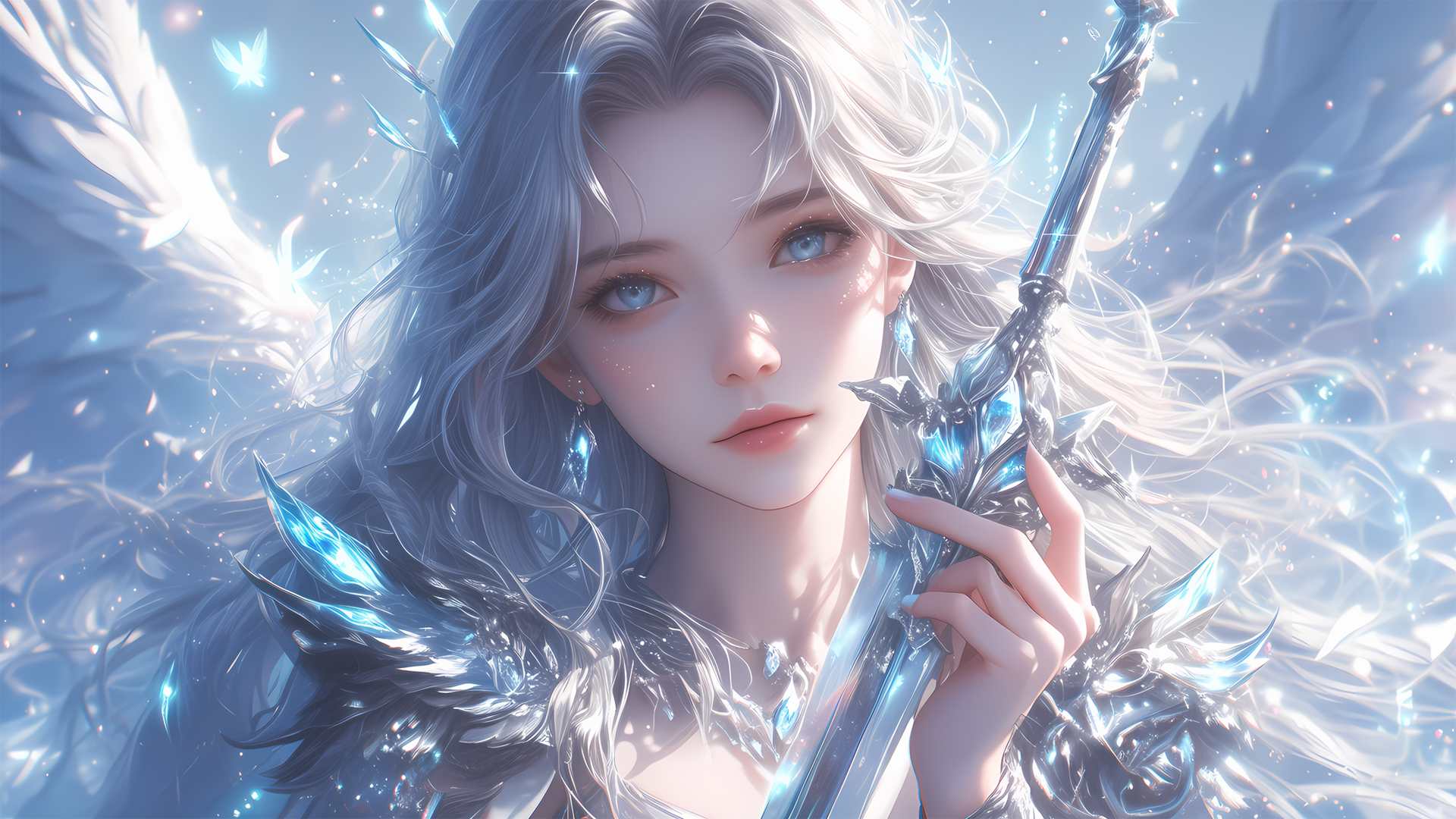 白发女孩蓝瞳持剑动漫壁纸 免费高清电脑桌面下载