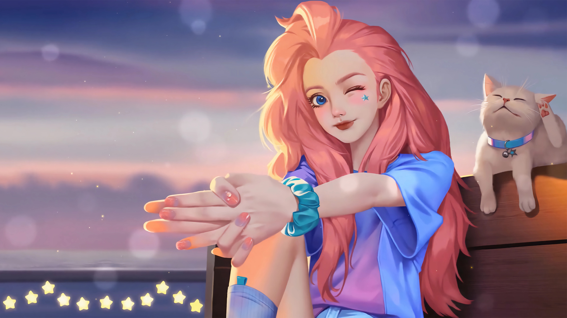 可爱萨勒芬妮与白色小猫动漫免费电脑壁纸下载