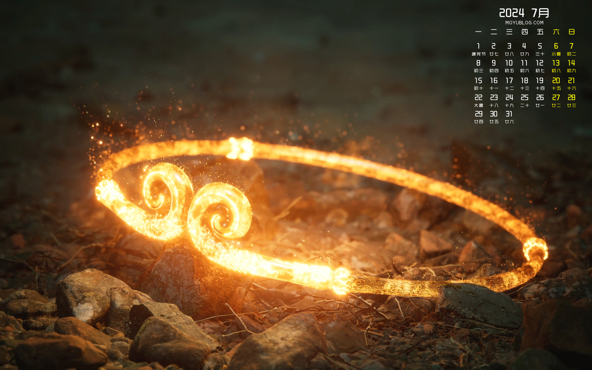 绘画山水夜景2025年7月日历桌面电脑壁纸