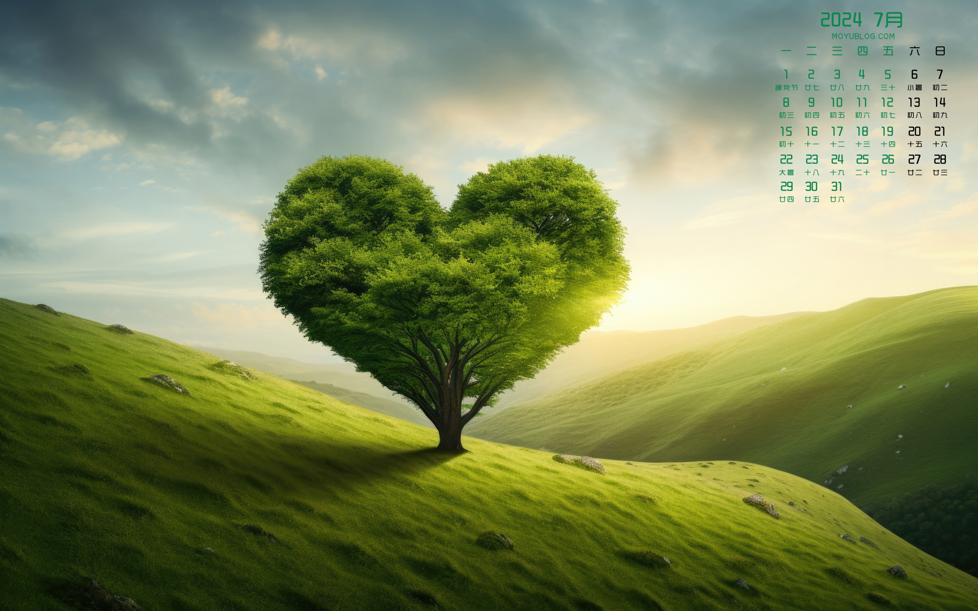 2024年10月清晨山水风景日历电脑壁纸免费下载