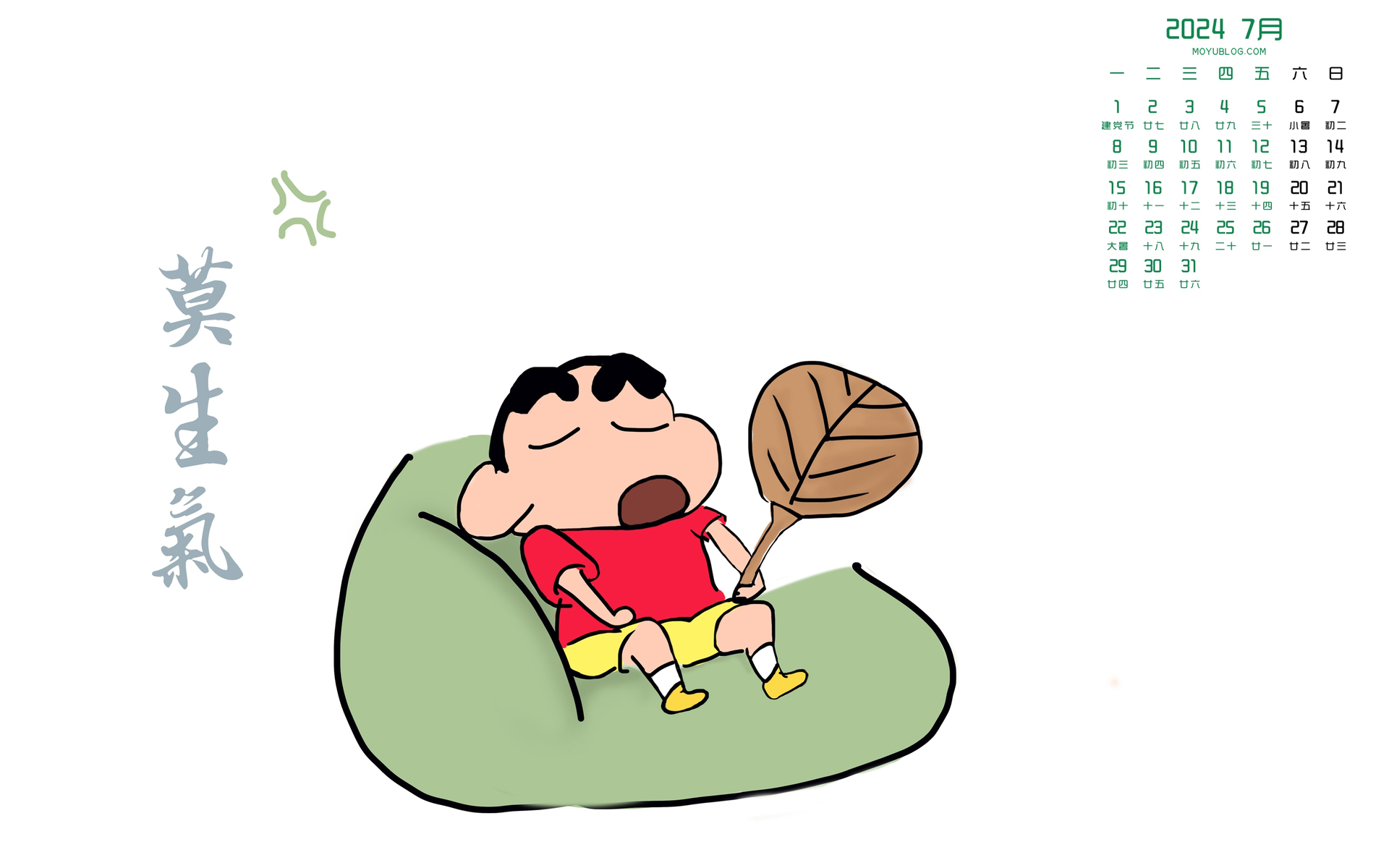 简约蓝天白云风景2024年7月日历桌面壁纸