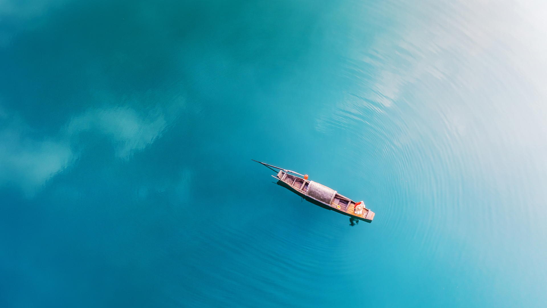蓝色水面小船风景免费电脑壁纸高清下载