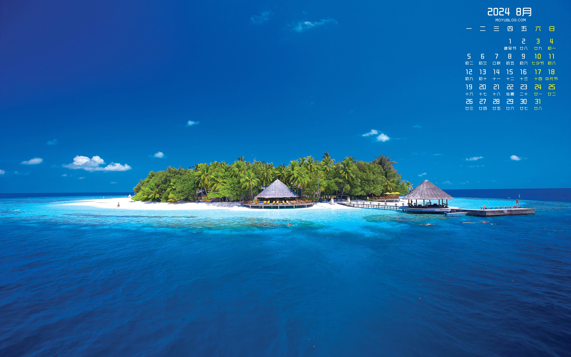 辛巴狗 西瓜 2024年8月日历桌面壁纸